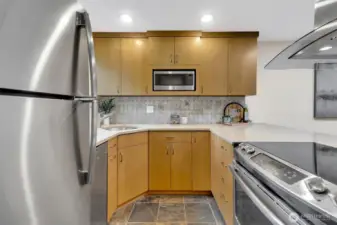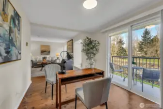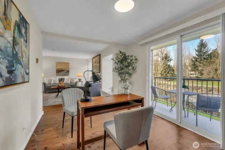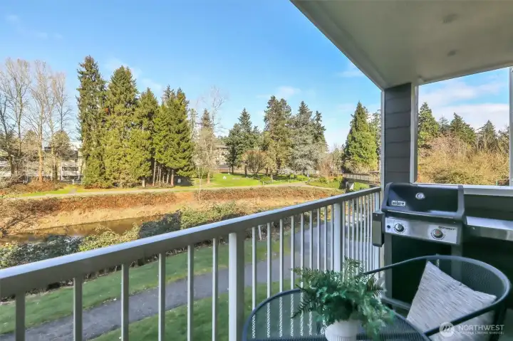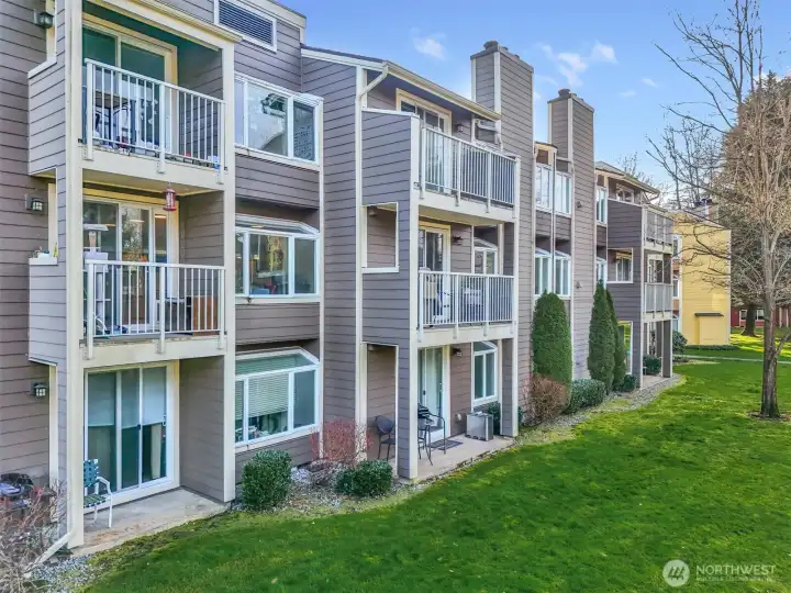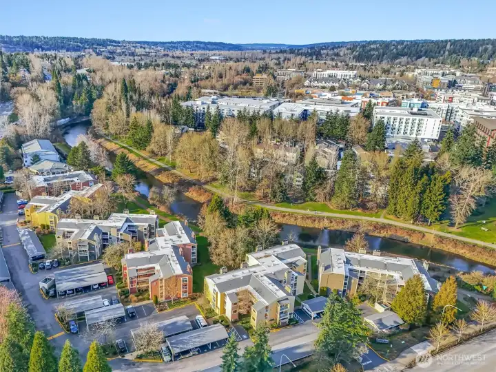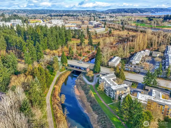 Amazing Redmond location situated on the serene Sammamish River. This updated Sammamish Waterway condo offers 1-bedroom + Den (flex space) with VIEW balcony overlooking the Sammamish River & riverside trail. You will be sure to enjoy the peace, comfort and convenience. New interior paint, new carpet, thoughtfully designed and elegant kitchen with quartz countertops and beautiful backsplash. Gorgeous updated bathroom with custom shower. Light filled living area with fireplace & built-in window benches with storage. Storage lockers & bike room are a wonderful convenience. Location is everything, with easy access to freeways & Redmond Towne Center, shopping & dining options. Nearby Sammamish River trail, Marymoor Park & the brand-new light rail station will make commuting a breeze. 1 covered parking + permit parking. Well-maintained common areas & well-funded HOA with no rental cap, this property presents an excellent opportunity for both homeowners & investors.