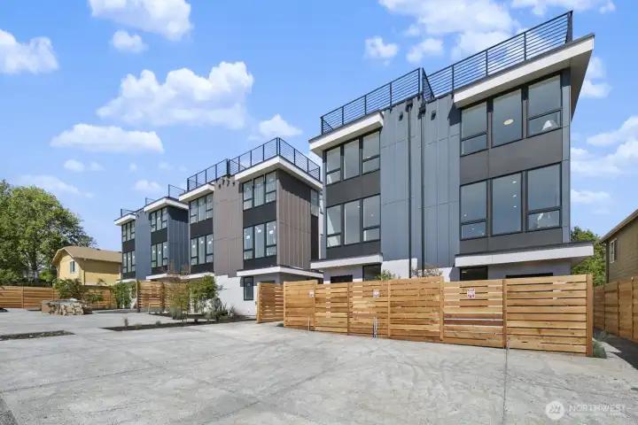 Final 2 homes remain! Location, lifestyle and limited availability. Welcome to Cloud 9, a boutique community of 9 thoughtfully designed homes in North Green Lake. This 2-bed/1.75-bath home marries smart design with refined finishes, offering rooftop decks, private outdoor retreats, and top-floor primary suites. Every home includes high-efficiency heat & A/C, contemporary finishes, EV-ready off-street parking, and compact garages ideal for bikes, gear, or extra storage. All just ½ mile from Green Lake with easy access to I-5, Hwy 99, North Seattle College, and LINK light rail.