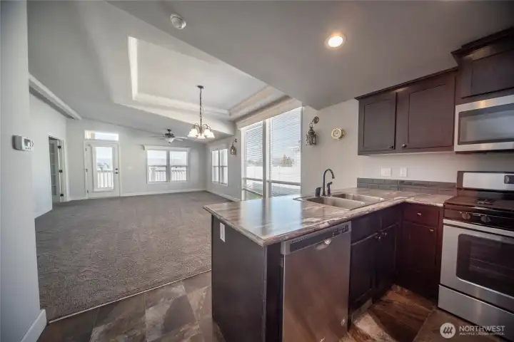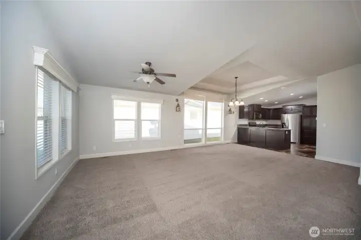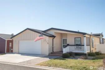 Welcome to this beautifully maintained 2020-built 2-bedroom, 2-bath home on located in the 55+ Rosewood Community. The open floor plan features vaulted ceilings and a spacious kitchen with a breakfast bar, stainless steel appliances and abundant cabinetry—perfect for everyday living and entertaining. The primary suite offers a large en-suite bath with a walk-in shower and a generous walk-in closet. A second bedroom and full bath are thoughtfully positioned away from the primary suite, providing privacy for guests. An additional living space for a home office or den. Relax on the covered front and back porches. Additional highlights include a 2-car garage and underground sprinklers on leased land. Residents enjoy access to a neighborhood clubhouse, ideal for socializing, games, or coffee with friends. Move-in ready and waiting for you to call it home!