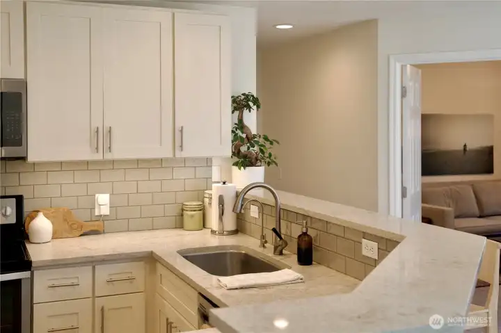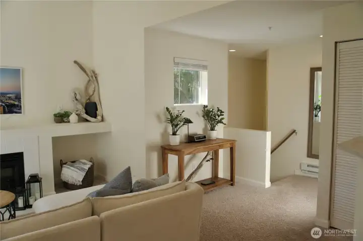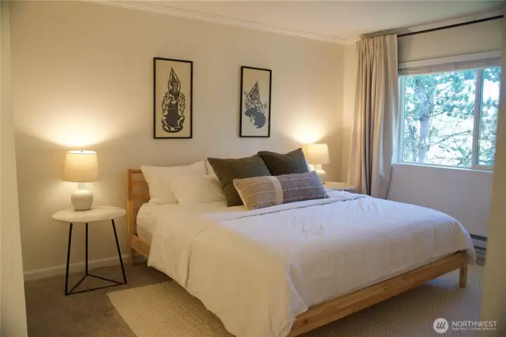 Nicknamed the “Treehouse,” this top-floor sanctuary is bathed in natural light and soaring vaulted ceilings while feeling perfectly nestled among the trees. Overlooking a quiet park and winding walking paths, the home offers a rare sense of privacy and serenity within the Riverview community. This well-cared-for 2-bedroom, 2-bath home features an open layout with updates that reflect the beauty of the surrounding views. The airy living room is anchored by a cozy fireplace and flows seamlessly to a private balcony overlooking the lush park trails. The heart of the home is the beautifully updated kitchen, showcasing hardwood cabinetry, quartz countertops, abundant storage, and stainless steel appliances. Adjacent to the main living area, the primary suite serves as a true retreat with an updated en-suite featuring a large soaking tub and a spacious walk-in closet. Functionality is a hallmark of this home, highlighted by the rare attached 1-car garage with direct entry, a dedicated driveway, a workspace, and significant extra storage. Perfectly situated for an easy commute, you are just minutes from I-5, 167, and 405, with effortless access to Southcenter’s dining and shopping. Best of all, there is NO Rental Cap, making this an incredible opportunity for both long-term comfort and investment flexibility. Modern style, "Treehouse" charm, and a park-side lifestyle—welcome home.