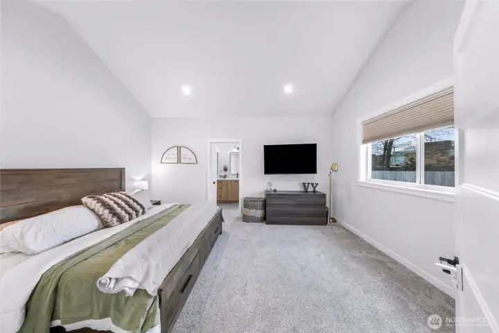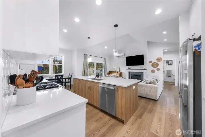 Beautiful home in the desirable Birchwood Community in South Everson! This single-level home offers the perfect blend of style, comfort, and functionality — all set in a welcoming neighborhood you’ll love coming home to.Step inside to vaulted ceilings in the entry and spacious great room, creating an open and airy feel. Cozy up by the gas fireplace or stay cool all summer with A/C. Just off the entry, you’ll find a versatile office that could easily serve as a 4th bedroom.The kitchen shines with modern farmhouse charm, featuring white and stained cabinetry, quartz countertops, a tile backsplash, stainless steel appliances, and a generous walk-in pantry. The thoughtful split-bedroom design provides privacy, with a vaulted primary suite complete with a walk-in closet and an en-suite bath showcasing double vanities, tile flooring, and a beautifully tiled shower.Durable waterproof luxury vinyl plank flooring runs through the main living areas, with plush carpet in the bedrooms for added comfort. Outside, enjoy a large lot with covered decks, a fenced yard, and plenty of space to relax, garden, or entertain. Located out of the floodplain and with no HOA dues, this home offers peace of mind and flexibility.