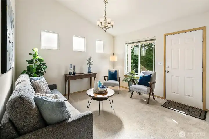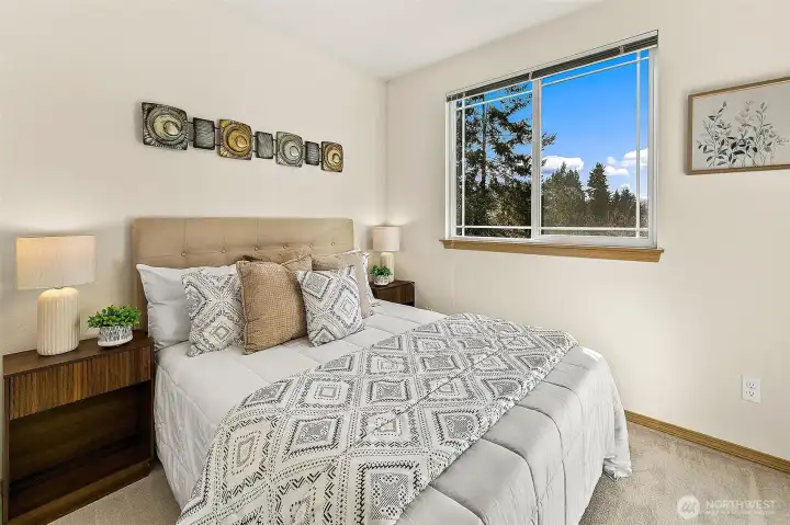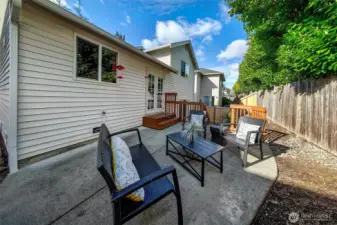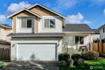 Impeccably maintained tri-level home in the Woodbridge community. Amazing opportunity to own this 3-bedroom, 2.5 bath beauty with a 2-car attached garage! Enjoy fresh paint and carpets throughout. The main floor features a formal living room and large dining room with French doors opening to a lovely upper patio, all adjacent to a spacious open kitchen featuring a new stainless refrigerator, gas range and vent hood, and newer stainless dishwasher, plus an eating bar & huge walk-in pantry. Relax in the spacious family room on the lower level with a recently updated gas fireplace & sliders opening to a private lower patio. Upper-level hosts 3 bedrooms including a large primary suite with vaulted ceilings featuring two closets & en-suite bath, and laundry closet with newer washer and dryer. This home is buffered by trees, quiet but close to everything. Easy access to I-5, 405 & Hwy 99!