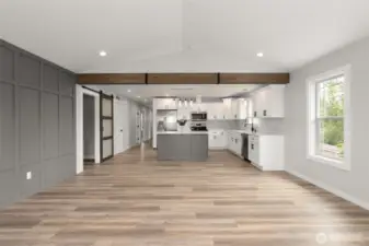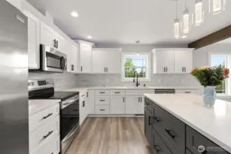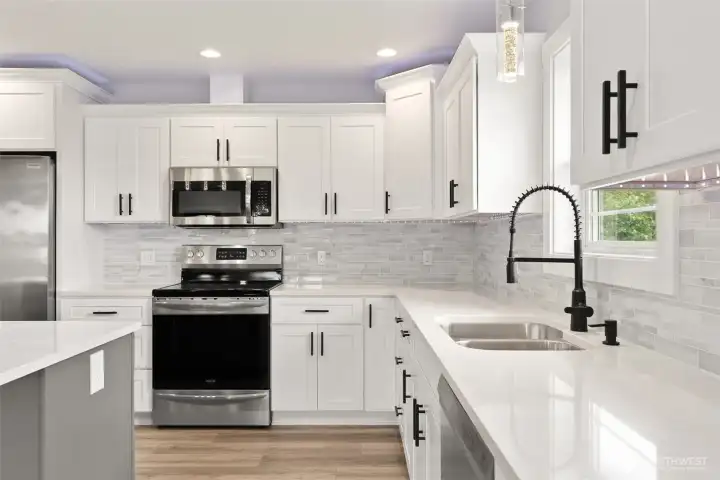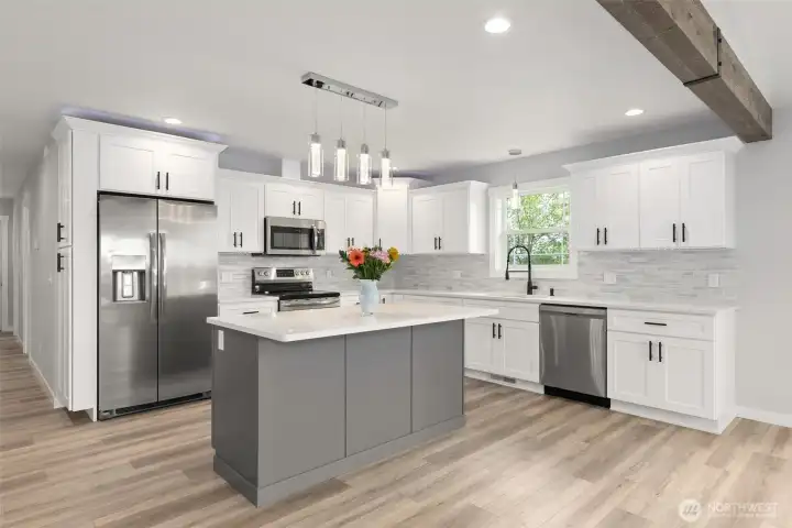 Built in 2022, this stunning, like-new home blends modern design with elevated finishes throughout. A covered front porch welcomes you into a light-filled living space featuring soaring vaulted ceilings, recessed lighting, a striking wood beam, and a dramatic floor-to-ceiling board & batten accent wall. The open-concept layout flows seamlessly into the bright, designer kitchen with quartz countertops, stainless steel appliances, tiled backsplash, oversized island with seating, and a spacious walk-in pantry—perfect for entertaining and everyday living. The luxurious primary suite offers a spa-inspired bath with dual vanities, an oversized walk-in shower, and a generous walk-in closet. Two additional bedrooms and a beautifully appointed full bath provide flexibility for guests, office space, or hobbies. A dedicated utility room with added storage enhances functionality. Step outside to the pristine back deck, partially covered with ambient lighting and territorial views, ideal for relaxing or hosting. The fully fenced yard provides privacy and versatility, while ample parking includes an attached garage with EV charger, concrete pad, and additional gravel parking. Immaculate, stylish, and move-in ready—this exceptional home is truly a must-see!