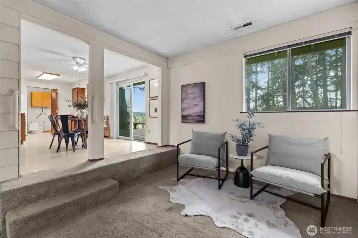Imagine mornings on your deck with view of the water, Mt Rainier and the quiet feel of island living just minutes from town. This Raft Island rambler offers space, privacy, and potential. Priced for your vision, an incredible opportunity to build equity with a view and community beach access. Enter through the covered patio into a cozy living room centered around a wood burning fireplace. The open flow from the living room to the breakfast nook, to the expansive 180 degree deck beyond the kitchen creates a space for entertaining or unwinding at the end of the day. Three bedrooms plus a flexible den provide options for a home office, bonus room, or creative space. The home is ready for your design ideas to create your own primary retreat, vacation home, or investment property. The opportunities are there to make it your own! Raft Island is a sought after community offering residents private beaches, boat launch, dock, kayak storage, tennis court, and parks. Spend your weekends kayaking, paddle boarding, or simply enjoying the shoreline. Centrally located near schools, shopping, and everyday amenities. Only 10 minutes from downtown and HWY 16 and 5 minutes from award winning schools including Gig Harbor High School. Also just 5 minutes to Kopachuck State Park. Come home to savor the unique Raft Island lifestyle and water views that never get old.
