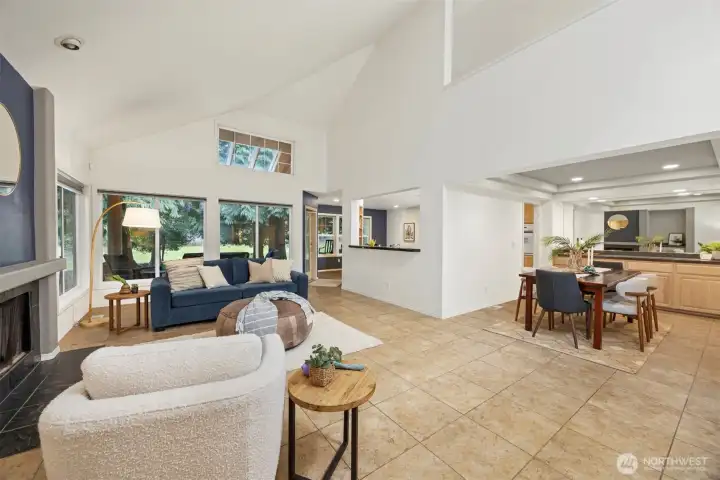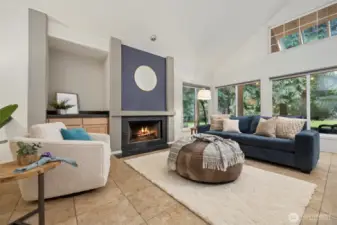 Stunning and private, three bedroom three bath home sitting on the 15th fairway of award winning Semiahmoo golf course. This home features over 2,700 sq feet, and is light, bright and beautifully maintained. Open living room with floor to ceiling windows, large kitchen with island, plus dining nook and separate dining room. Indoor/outdoor living with tons of space to entertain. The primary bedroom with its own fireplace, incredible bathroom, walk in closet, shower and bath. The main level also has an additional bedroom with private patio, laundry room and garage access. Upstairs you will find a huge family room overlooking the golf course and evergreens, along with a bedroom and full bath. Gorgeous outdoor space, with patios facing the golf course. Semiahmoo offers fantastic amenities including golf, swimming pool, parks, beaches, tennis and more, just minutes to the Canadian border. The well maintained HOA covers all outdoor spaces and exterior maintenance on this home as well. A true northwest dream home.