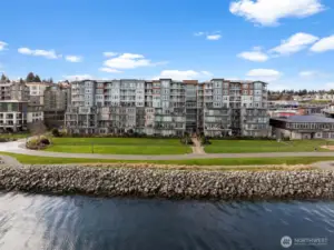Welcome to luxury living in the heart of Point Ruston with views of the water and the Cascade Mountains! This beautiful 2-bedroom, 2-bath Century Condo offers the perfect blend of location, lifestyle, and comfort in one of Tacoma’s most vibrant waterfront communities. Inside, you’ll find a chef’s kitchen featuring a natural gas range, stainless steel appliances, and ample counter space, ideal for cooking and entertaining. The open great room creates a bright and inviting space to relax or host guests. The spacious primary suite includes a walk-in closet and a well-appointed bathroom with a walk-in shower. One of the standout features of this home is the expansive patio, accessible from both the great room and the primary bedroom, offering stunning water and street views with plenty of space for outdoor dining, entertaining, or simply enjoying the energy of the waterfront. Additional highlights include a private storage unit, two parking spaces conveniently located next to the elevator for easy access, and brand new carpet. Just steps from waterfront dining, shopping, trails, and the Point Ruston waterfront, this condo offers an incredible opportunity to enjoy a walkable lifestyle in one of Tacoma’s premier destinations. A beautiful condo in an unbeatable location—come see it for yourself!