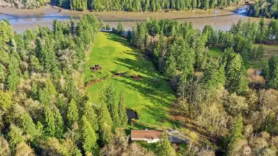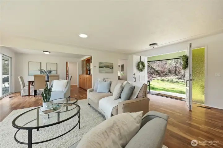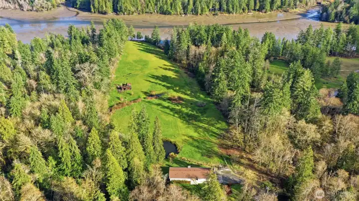 Secluded & serene, this beautifully updated 2060 sq ft (with approx. 1800 sq ft unfinished basement area), 3 bedroom, 2.5 bath home sits on an expansive 19.84 acres consisting of 2 separate parcels. This amazing piece of land has approx. 618 ft of waterfront on Henderson Inlet, multiple small creeks, a spring fed well and a freshwater pond that's home to your own family of ducks! Features in the home include a formal living room, family room, kitchen w/eating nook & a full unfinished basement. Recent updates include extensive hardwood floors throughout much of the home, new interior & exterior paint & updated bathrooms. This is a rare opportunity for those seeking privacy, space and a connection to nature while being minutes from schools, shopping, golf courses and the I-5 for easy commuting north or southbound.