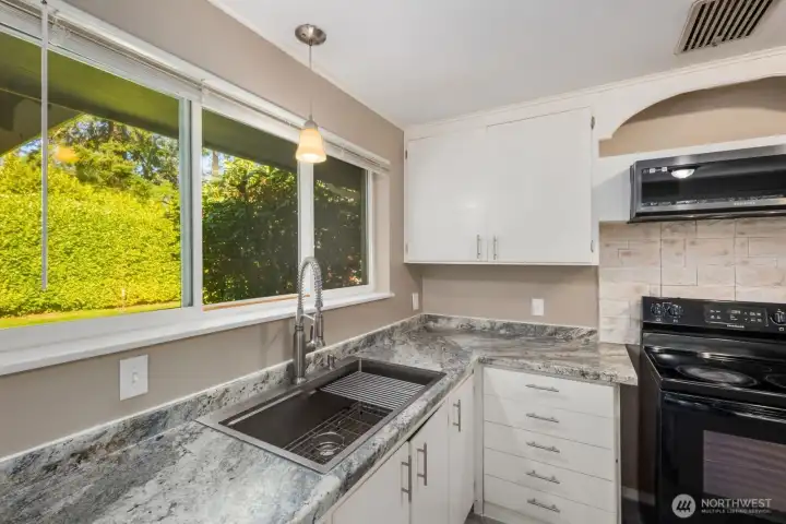 Don't miss this updated and spacious mid-century home that beautifully preserves its original character, featuring refinished real hardwood floors with a fresh protective coating and expansive windows that flood every room with natural light. The large, private, fully fenced backyard is designed for entertaining, complete with a covered patio, hot tub, powered shed, and generous green space. Includes a built-in sprinkler system for effortless maintenance. Inside, you’ll find a spacious kitchen with abundant storage and functionality. The primary bathroom has been thoughtfully updated with a modern walk-in shower featuring dual waterfall shower heads for a spa-like experience. Located just at the end of the street, enjoy direct access to Fort Steilacoom’s parks, off-leash dog areas, scenic pond and walking paths, hiking and biking trails, sports fields, playgrounds, and year-round community events.