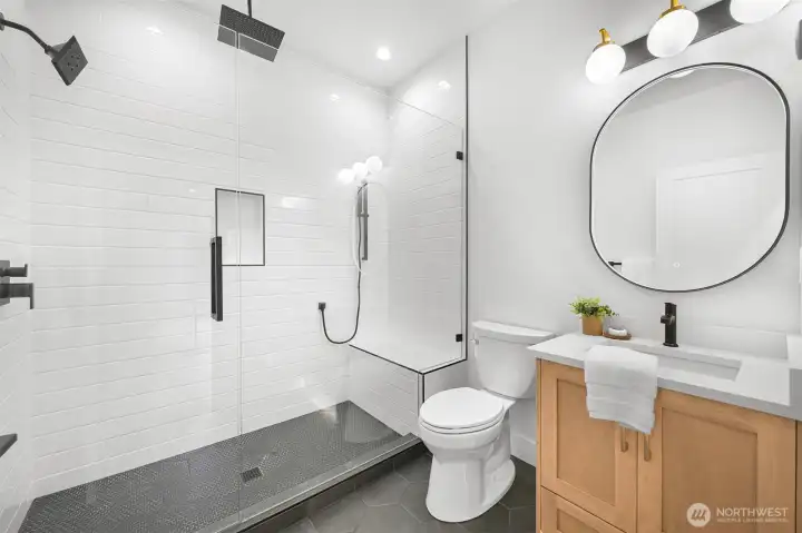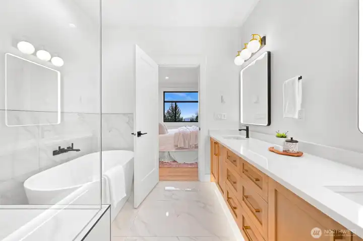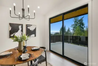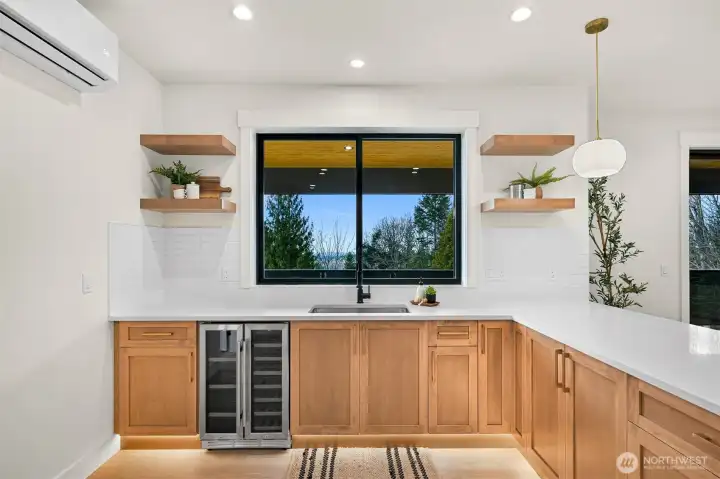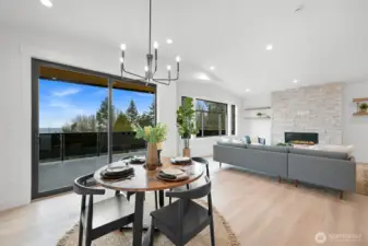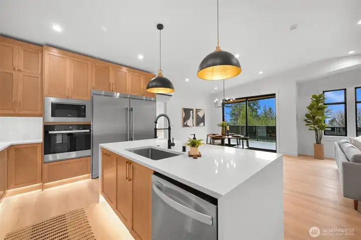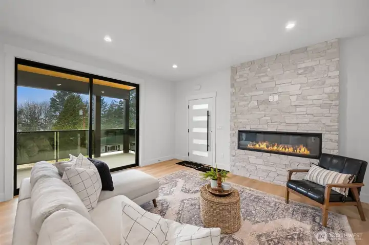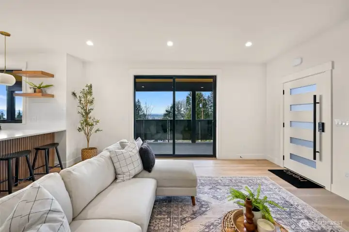 Stunning new construction offering exceptional flexibility and refined design throughout. The lower level provides a highly adaptable space that can serve as extended family living or be easily transformed into a fully self-contained ADU, complete with a private entrance, full kitchen, washer and dryer hookups, built-in wine fridge, and sink—perfect for guests or multigenerational living. Just off the garage, an additional finished room adds even more versatility, ideal for a home gym, media room, hobby studio, or ample storage. Upstairs, the thoughtfully designed main living area blends comfort and sophistication. A chef-inspired kitchen features high-end stainless steel appliances, abundant cabinetry, and generous counter space, flowing seamlessly into a bright living room anchored by a gas fireplace with striking floor-to-ceiling stonework. The primary suite offers a peaceful retreat with a spa-like ensuite bath and spacious walk-in closet. Outdoor spaces are equally inviting, showcasing tasteful hardscaping, additional lower-level parking, and two expansive decks with sweeping territorial and bay views—perfect for relaxing mornings, outdoor dining, or entertaining. With upscale finishes, modern amenities, and flexible living options, this home is designed to suit a wide range of lifestyles