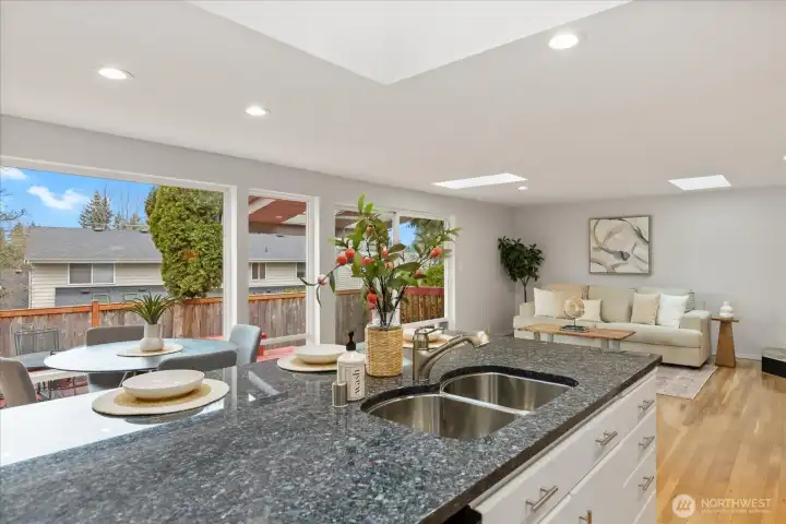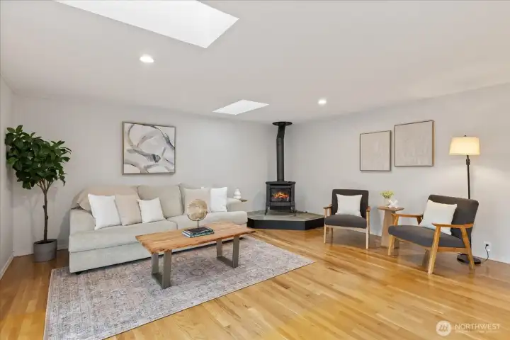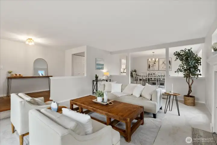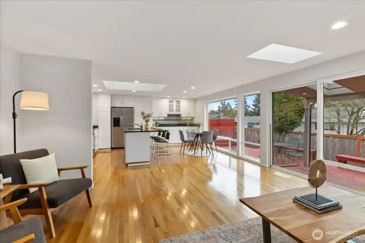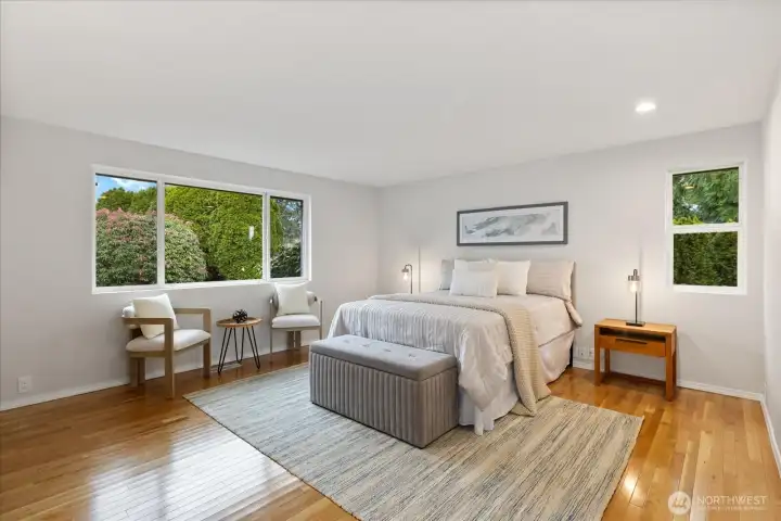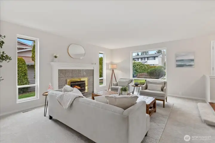 This is it! 3,640-square-feet & move-in ready in coveted Del Mar Woods. Boasting a rare and highly functional layout, the home features 2,670 square feet on the MAIN LEVEL including 4 bedrooms & 2.5 baths. Massive Primary Retreat on the main (16 x 21) with walk in closet & huge 5 piece bath w/jetted tub & hard to find spacious layout. Living Rm, Dining Rm, Great Room - all with oversized vinyl windows & optimal natural light. East facing front of the house means a sunny backyard. Gleaming oak hardwoods, a white kitchen with tons of cabinetry and oversized windows & skylights. 2023 Furnace, Air Conditioning, & mini split system for year-round efficiency & comfort. 2 gas fireplaces. Brand New Carpet, Paint, Lighting & Hardware throughout. Nearly 1000 SF on the 2nd LEVEL would be a great ADU with ¾ bath, wet bar, Mid-Mod wood fireplace, & mini-split heat/cool. It's the ultimate flex space that can work for whatever you need. Pool Table Included. Outside is fully fenced with nice blend of deck & lawn. Established landscaping for privacy. Walking distance to Newcastle Commons & Coal Creek Village for premium shopping and dining. Explore many parks & trails from your door in commuter-friendly Newport Hills. Award-winning Bellevue School District: Newport Heights, Tyee, Newport HS. Pre-Inspected for peace of mind.