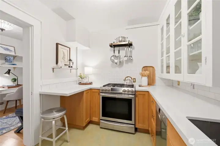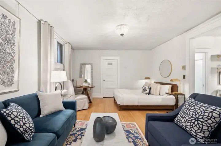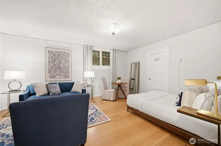 Historic 1909 Wilana Cooperative studio in the heart of Capitol Hill offering classic character with thoughtful modern updates. Tall ceilings and warm wood flooring create an open, inviting feel. The beautifully updated chef’s kitchen features a five-burner gas range, Bosch dishwasher, and Fisher & Paykel refrigerator—ideal for those who enjoy cooking at home, rarely found in studio living. The updated bath adds to the home’s move-in ready appeal. An oversized closet with built-ins provides exceptional storage and organization. The layout makes excellent use of the space while maintaining comfort and functionality. Residents enjoy a well-maintained pet-friendly historic building with additional storage and newly installed washers and dryers in the community laundry room, free for residents to use. Located just moments from the light rail station, neighborhood cafés, restaurants, shops, and parks. This home offers easy access to downtown and the best of Capitol Hill living.