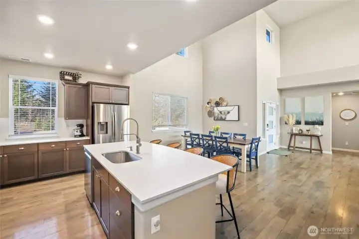 Experience the perfect blend of modern luxury and functional design in this stunning Lennar resale, perfectly positioned in the heart of Tehaleh. This rare floorplan features the primary suite on the main level, offering a private sanctuary complete with a spa-like 5-piece bath and walk-in closet. The heart of the home is a grand, two-story great room that captures incredible natural light, flowing into a chef-inspired kitchen with slab quartz countertops and stainless appliances. Upstairs, you’ll find a versatile loft and additional bedrooms, providing plenty of space for everyone. Located within the top-rated Sumner-Bonney Lake School District, this home offers more than just a place to live—it offers a lifestyle. Step outside to enjoy 40+ miles of trails and 17+ unique parks just minutes from your front door. Best of all, you are surrounded by the unmatched mountain views that make Tehaleh famous, providing a constant, breathtaking backdrop of Mount Rainier. The outdoor living space features a covered patio and a manicured, level yard that is fully fenced for privacy. Whether hosting a summer barbecue or enjoying a quiet morning coffee, the seamless indoor-outdoor flow makes entertaining effortless. This vibrant community fosters lasting connections, where weekend food trucks and neighborhood events are just a short stroll away. Don't miss this opportunity to own a piece of Washington’s premier master-planned forest community.