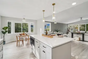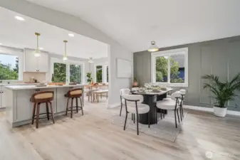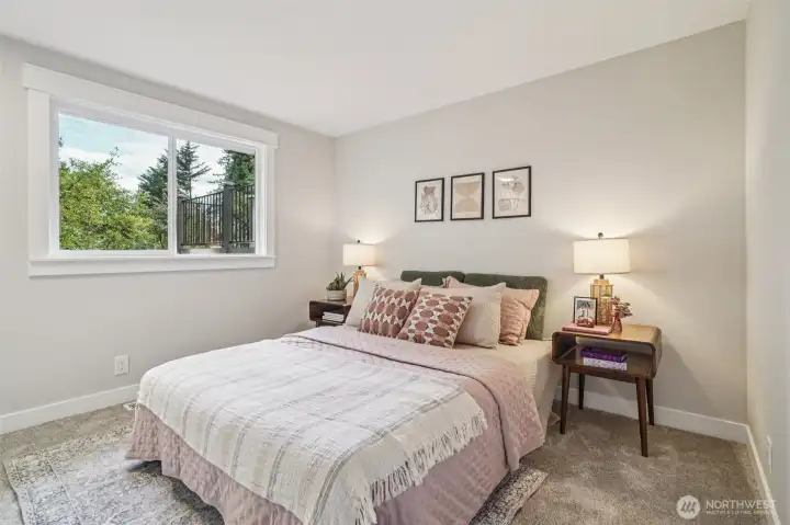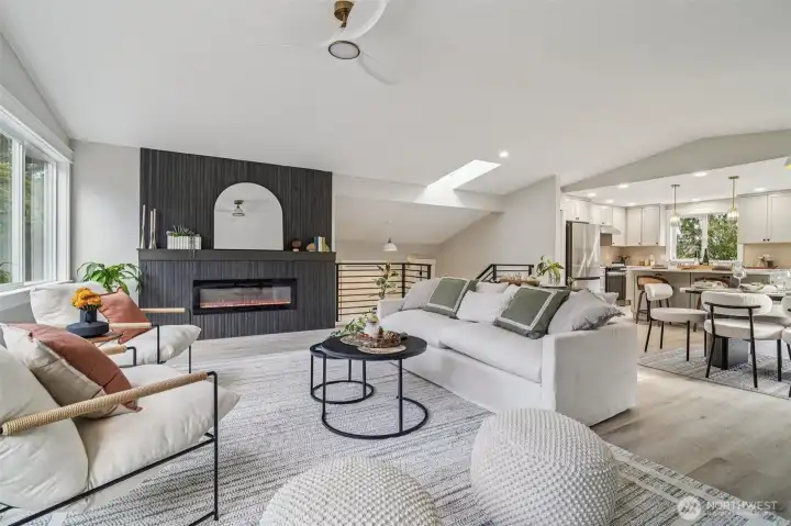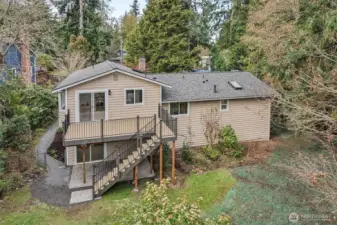 21620 84th Pl W, Edmonds, WA: Nestled on a lush 18,730 sq ft lot in a quiet Edmonds setting, this beautifully updated 4-bedroom, 2.5-bath home offers the perfect blend of privacy, natural light, and functional living. The highly desirable layout features 3 bedrooms on one level, including a spacious primary suite with walk-in closet & ensuite bath. The main living level showcases vaulted ceilings, expansive picture windows, and abundant natural light, creating a warm and inviting atmosphere. A cozy fireplace anchors the living room, which flows seamlessly into the open dining area—ideal for hosting gatherings of 8-10+ guests. The kitchen offers generous prep space, ample cabinetry, and a sunny breakfast nook overlooking the tranquil backyard. Step outside to a large entertainment deck and experience a truly special outdoor setting. The expansive yard features mature landscaping, play space, storage, and even trails, offering a rare park-like environment with future DADU potential (buyer to verify). Every window captures peaceful greenery that evolves beautifully with the seasons.The lower level provides excellent flexibility with a bonus room that could also function as a 4th bed, along with a full laundry room and convenient powder bath. An attached two bay garage plus generous driveway parking adds everyday convenience. Freshly planted lawn, pre-inspection available, and move-in ready. This Edmonds home delivers privacy, space, and versatility—minutes from parks, amenities.