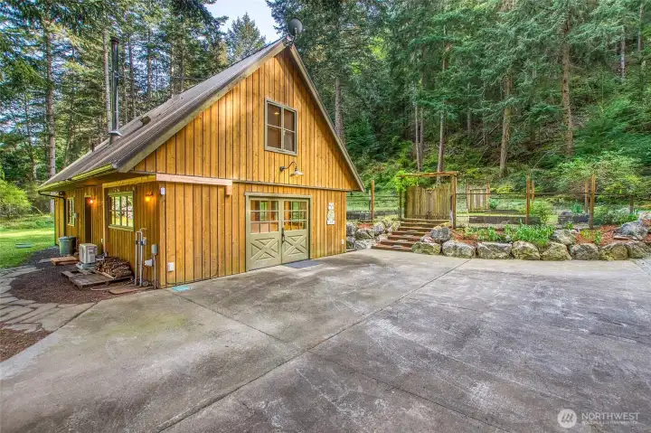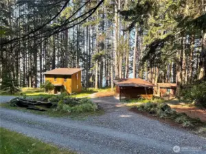 Rare 15 acres of private waterfront property and +/- 1033' of frontage facing the mainland mountains and Matia Island with the potential to create 3 lots. Mature forest, seasonal stream w/ a waterfall and meandering shoreline paths set the stage for your island retreat just 15 minutes from Eastsound. Two existing cabins each w/ 2 bedrms/1 bath & full kitchens for a total of 2165 sf of living space. A main house site is cleared & the drawings are developed w/ septic installed for 7 bedrms (total) should you someday build another home. Chicken coup, kennel/dog run, carport, storage building, patio w/ fire pit, irrigated/fenced raised bed garden and level land to play. Rent one home and occupy the other or enjoy space for friends.