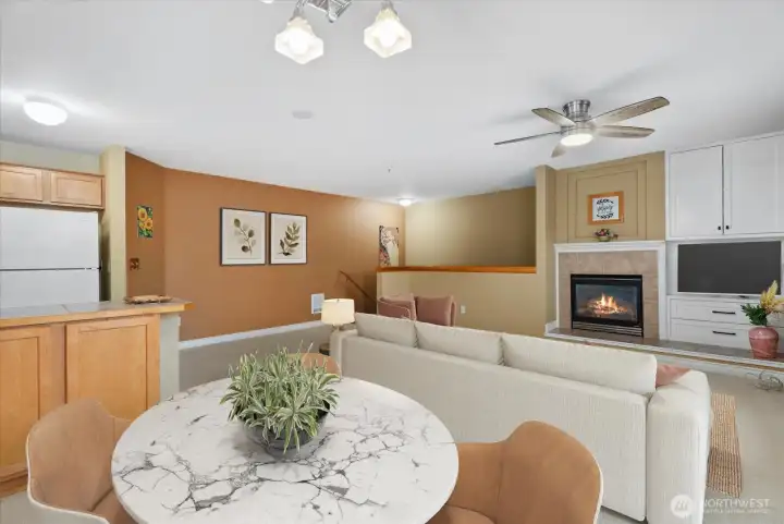 Excellent value! Conveniently located, just off I-5 and 164th exit. Easy walk to Ash Way Park and Ride, dining, shopping, and even Martha Lake. This is a west-facing, two bedroom, one and three-quarters bathroom condo with a street level entrance. Secure, detached one-car garage directly across from front door. Well maintained by same owner since 2016, move-in condition. No rental cap. FHA qualified. Comfortable primary bedroom with ensuite and walk-in closet. Cozy gas fireplace with blower (this can heat your entire condo), nice sun-drenched west-facing deck just off the dining area. Washer/dryer and all appliances convey. Solid HOA with good reserves where low fees include: common area and lawn maintenance, water, sewer, snow removal.