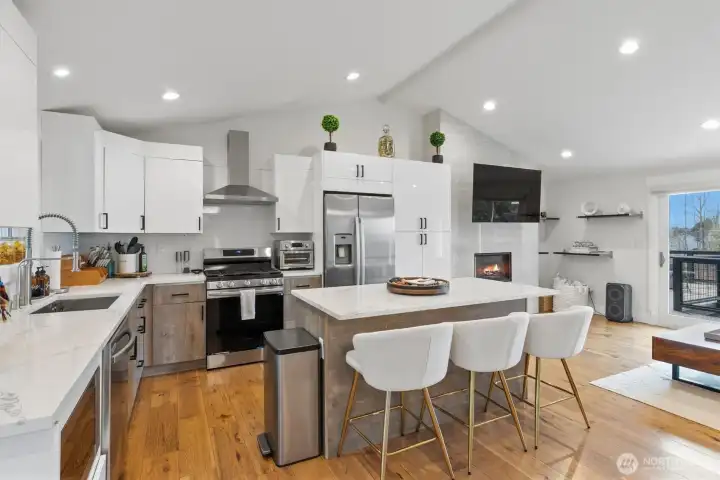 Experience refined living in this fully reimagined Upper Kennydale residence. A comprehensive 2022 renovation delivers modern luxury with lasting structural integrity — including a new roof, new siding, and a high-efficiency heating and cooling system. The thoughtfully designed 4-bedroom, 3-bathroom floor plan offers generous proportions throughout, with luxury plank floors anchoring each room in warmth and continuity. The kitchen is appointed with stainless steel appliances, two tone cabinetry, and finished with clean, contemporary detailing. Elevated indoor-outdoor living defines the home's most distinctive feature: a large, elevated deck positioned to accommodate generous entertaining and al fresco gatherings. Its scale and elevated position make it an exceptional venue for hosting, from intimate dinners to larger social occasions. Located in the sought-after Kennydale neighborhood, the property sits approximately 13 minutes from downtown Bellevue, offering convenient access to the Eastside's premier employment, dining, and retail destinations.
