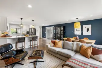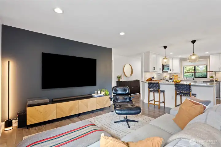 3 bedroom, 1.75 bath single-story living that feels far larger than its footprint! It’s all about the details, and no detail has been overlooked in this fully remodeled and thoughtfully updated home. The open-concept floorplan offers a spacious living area and a massive, light-filled kitchen with quartz countertops, abundant cabinetry, a walk-in pantry, and stylish LED lighting. Hardwood floors, crown molding, and custom tile in both bathrooms elevate the finishes throughout. Enjoy year-round outdoor living with a PNW-style covered deck that opens and closes with the seasons, the backyard is fully fenced for your fur babes, plus upgrades including central air for cooling, newer roof, windows, EV charger, and smart locks and lights. The finished garage is heated and cooled, tons of storage and organization for all of your toys and stuff. Best of all no HOA! Bring your kayaks and paddle boards as the home is close to 2 lakes. Most furniture is for sale, the home is pre-inspected, fresh landscaping, and move-in ready. Located on a corner cul-de-sac, minutes to I-5/18/167, shopping, and dining.