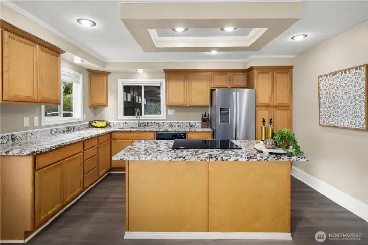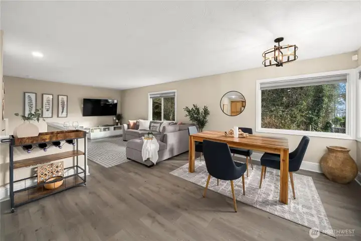 Welcome to this beautifully renovated rambler with a daylight basement in sought-after Edgewood. Offering 1,824 sq ft, 3 bedrooms, and 1.75 baths on nearly a half-acre of secluded property, this home blends modern updates with flexible living. The open-concept main level features a stylish kitchen with stainless steel appliances, granite countertops, and an island cooktop that anchors the space, flowing seamlessly into the dining and living areas. A full bath and spacious bedroom with a walk-in closet complete the main floor. The daylight basement offers a second potential primary suite with a walk-in closet and private en suite with shower and double sinks - ideal for guests, multigenerational living, or a private retreat. Set down a peaceful driveway and facing away from the street, the home provides quiet privacy, a large patio perfect for entertaining, a yard with space to play or relax in a hammock, and a two-car garage. Modern comfort, versatility, and a serene setting come together in this move-in-ready Edgewood home. A rare combination of modern updates, flexible living space, and a serene setting - this Edgewood home is ready to welcome its next chapter. Added bonus: don't forget to ask about our preferred lender buyer credit to help with closing costs!