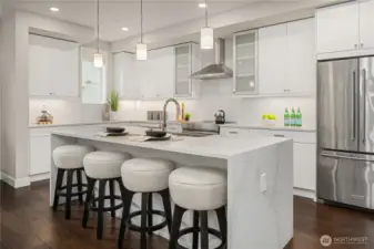 Discover hassle-free living at its finest in Sammamish’s most sought-after location where thoughtful design, modern technology & convenience elevate daily life. This contemporary residence welcomes you with open-concept living spaces filled with natural light, designed for connection, comfort & effortless entertaining. At the heart of the home a chef-inspired kitchen showcases top-of-the-line appliances & sleek designer finishes, blending beauty & performance for memorable gatherings. Throughout the home, high-end materials & curated details reflect a commitment to quality & style. Modern living is seamless with fully wired SMART systems featuring motorized Lutron shades, Sonos in-ceiling speakers for immersive sound & full security camera system for peace of mind. Every feature has been thoughtfully integrated for comfort & ease. This substantial home includes 3 spacious bdrms+ an office/den ideal for today’s work-from-home lifestyle. The top-floor flex space w/kitchenette, bathroom & closet offers incredible versatility as a luxurious guest retreat, media room, or private 4th bedroom suite. Inviting decks on every floor extend the spaces for yr-round indoor-outdoor living with territorial views. Lrg attachd 2 car garage includes 40-amp EV chrgr. Nestled in the coveted Lake Washington School District & just a short stroll to Trader Joe’s, Met Market, copious shops, restaurants & trails, this home offers the perfect blend of comfort, tranquility & vibrant community living.