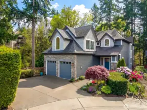 Imagine being fully immersed in nature while enjoying more than 4,700 square feet of refined modern comfort. Expansive windows and soaring ceilings pair beautifully with rich granite surfaces and freshly refinished hardwood floors, effortlessly drawing the outdoors in. The home feels as though it rests within a private park—surrounded by trees and enveloped in exceptional privacy. This Jay Marc Home was designed with entertaining in mind, with an open-concept layout that offers a generous living area and a chef’s kitchen complete with an oversized island, 36" Viking range, and custom cabinetry. Five bedrooms and four-and-a-half baths provide remarkable flexibility, including two primary suites with ensuites—one conveniently located on the main level. Upstairs, a bright loft accompanies two additional bedrooms and a second primary retreat. The lower level impresses with soaring ceilings and expansive windows, offering excellent ADU potential with a kitchenette, one bedroom, a full bath, and a sprawling family room immersed in greenery. Recent updates include full interior paint, new carpet, and exterior paint in 2024. Abundant storage throughout enhances everyday ease. Ideally located near schools, shopping, neighborhood trails, and a dog park, plus quick access to Bellevue and Seattle. Comes complete with a two-car garage, jacuzzi, and A/C, this home seamlessly blends comfort, privacy, and convenience.