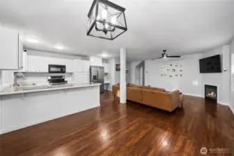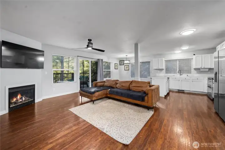 Welcome to lakefront living in the gated Clearwood Community! This spacious 2-story home offers 1,908 sq ft with 90 feet of private lake frontage (Horseshoe Lake) and peaceful, tree-lined surroundings. The large primary suite features a large walk-in closet and ensuite bath. With 3 bedrooms upstairs, 3 full bathrooms (2 up and 1 down), and a generous main-floor office/den (ideal as a 4th bedroom), there’s room for everyone. Enjoy a fully fenced backyard with a whimsical “fairy trail” leading to your own lake access - perfect for kayaking, fishing, or relaxing by the water. Interior finishes include carpet, hardwood laminate, and ceramic tile throughout, quartz countertops with white cabinets overlooking your homey living room with a cozy fireplace. All appliances stay! Don’t miss the HUGE finished basement bonus space - ideal for a media room, gym, playroom, or ultimate man cave. Located just 30 minutes from JBLM’s East Gate, Clearwood offers incredible amenities: three private lakes, beaches, swimming pools, tennis courts, fishing docks, walking trails, spa, picnic areas, baseball and basketball courts, boat launches, RV parking, and more. This is more than a home...it’s a lifestyle.