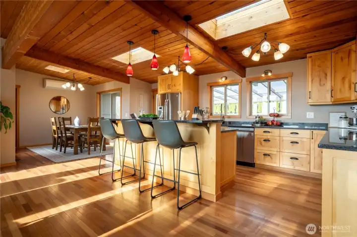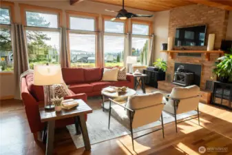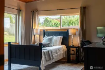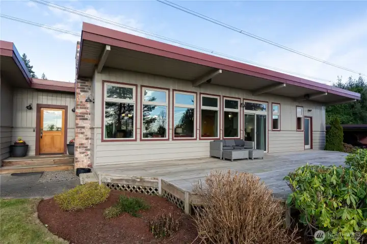 Iconic mid-century modern with panoramic southwest-facing views across Drayton Harbor and out to the San Juan Islands. Sited on an oversized, nearly half-acre lot (19,038 sqft lot), this beautifully updated rambler pairs clean architectural lines with warm, modern finishes throughout. Walls of glass frame unforgettable sunsets from the main living spaces and expansive view deck.The large backyard offers privacy, mature plantings, and ample space for gardens, play, or potential ADU opportunities (buyer to verify). Two-car garage plus generous parking accommodates boat/RV storage with ease. A rare blend of mid-century design, usable land, and commanding Blaine views.