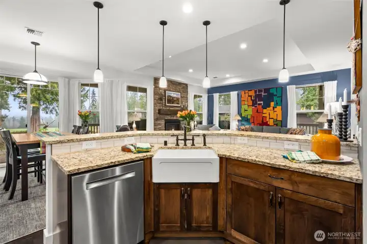 Directly on the beautiful Port Ludlow Golf Course, this spacious 2400 sf single-level custom home pairs classic rustic mountain styling with stunning fairway views—enjoyed best from the wrap-around porch. Inside, the great room features a dramatic stone fireplace and flows into a chef’s kitchen with a built-in propane range, commercial-style hood, wall oven, microwave, walk-in pantry, and abundant workspace—perfect for everyday living and entertaining. The floorplan offers three bedrooms (two ensuite) plus a den. All bedrooms include walk-in closets, including an oversized primary closet. Built in 2021, the home showcases modern energy-efficient features and low-maintenance finishes. A roomy, drywalled and insulated two-car garage adds comfort and practicality. Approximately five years remain on the structural warranty for added peace of mind. With miles of nearby trails and easy access to the clubhouse, marina, and the Resort at Port Ludlow, this location is ideal for both full-time living and weekend escapes—about 1.5 hours from Seattle. No HOA dues.