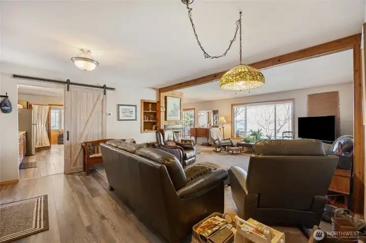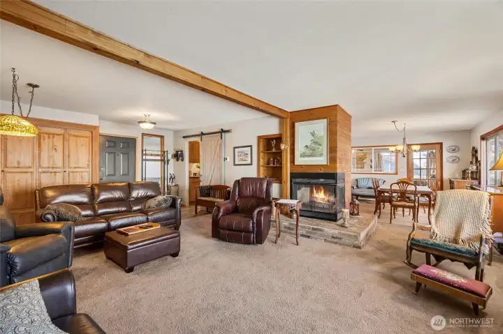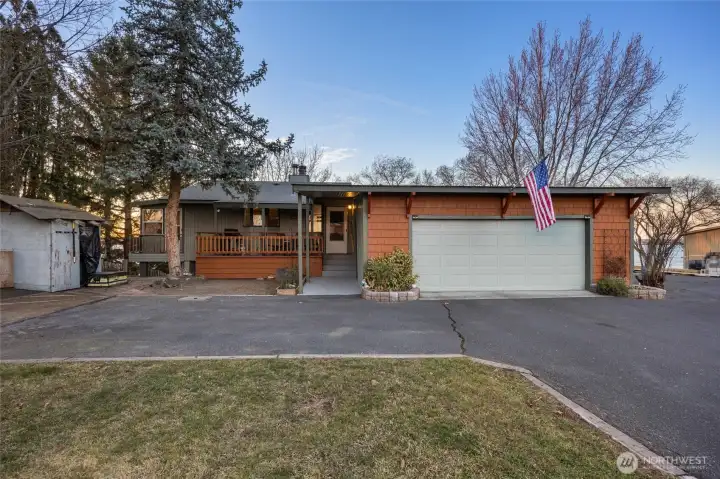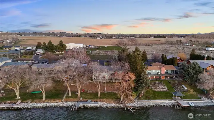Experience true lakefront living at 4190 Shorecrest Dr NE in Moses Lake. This 3-bedroom, 2.5-bathroom, 2,428 sq ft home offers single level living with a primary suite on the main floor and a daylight basement. Situated on the water with steps leading directly to the shoreline, this property captures both stunning sunrises and unforgettable Moses Lake sunsets. Enjoy panoramic lake views from the wood deck off the dining area or relax year-round in the enclosed sunroom just off the kitchen. Inside, the home features two fireplaces, spacious living areas, and all appliances included. Fresh exterior paint enhances the home’s curb appeal, including new paint the lower-level interior. Outdoors is where this property truly shines. The recently replaced L shaped dock includes a hydraulic boat lift and ladder, making lake access effortless. Irrigation is pumped directly from the lake, and the household water is serviced by a well. Fully fenced yard with mature trees and established landscaping provide privacy, shade, and a peaceful setting throughout the year. Two outbuildings offer storage for tools, lake toys, or equipment. Located in the county, this property offers space, privacy, and the full lakefront lifestyle. Whether you are looking for a primary residence or a waterfront retreat, this is a rare opportunity to own a beautifully maintained home with direct water access on Moses Lake.