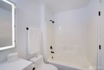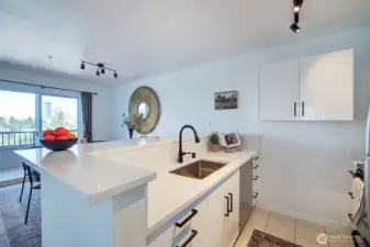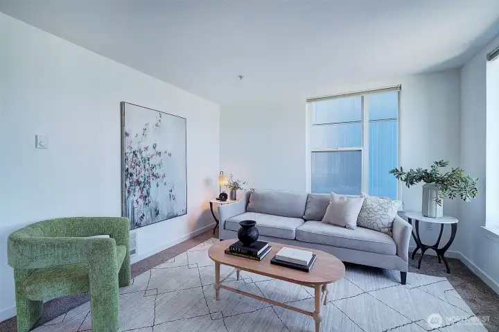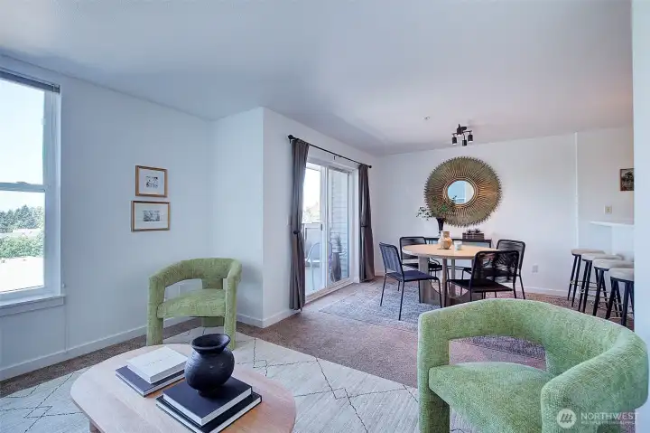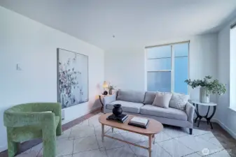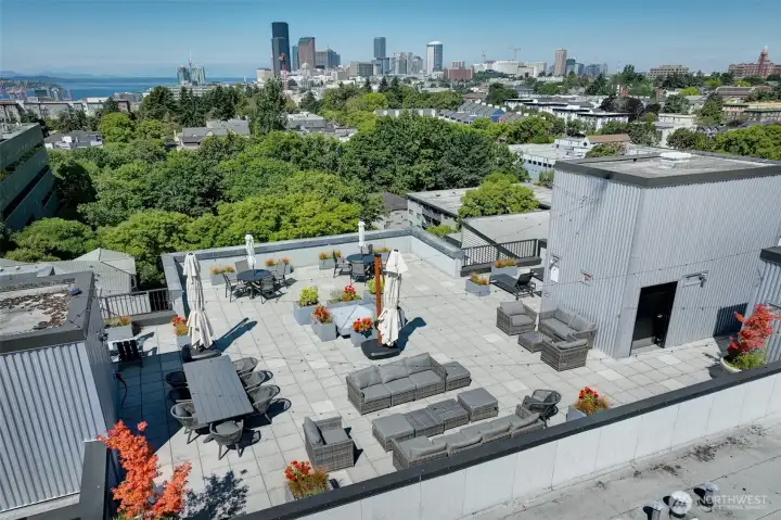 Central living with sweeping city, Sound, mountain, and sunset views! This light-filled 5th-floor SW corner, end unit features a private deck—your front-row seat to stunning sunsets behind the skyline. Located in a secure building with dedicated garage parking and a storage locker.The home offers two bedrooms (ideal for a home office), separate living and dining areas, a newly updated kitchen with quartz countertops and stainless steel appliances, and a refreshed bathroom with LED anti-fog mirror, floating vanity, and in-unit washer/dryer.Homeowners enjoy a spacious rooftop patio perfect for entertaining, dining, and soaking in even more panoramic views. Located near the Judkins Park Light Rail Station (scheduled to open March 2026) and an exceptional 93 Walk Score—groceries, banking, dining, cafés, fitness, schools, and everyday essentials are all just steps away.