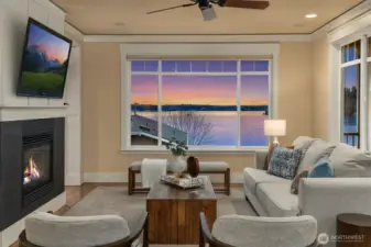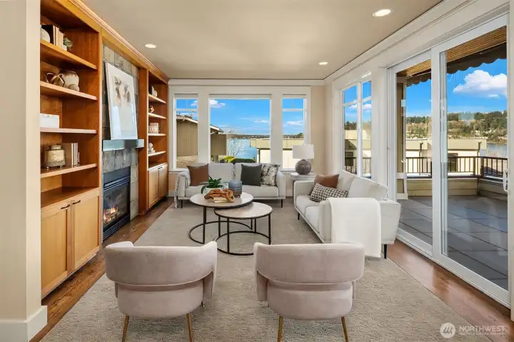 Situated in the sought-after Lower Kennydale neighborhood, this exceptional residence offers sweeping panoramic views encompassing Lake Washington, Mercer Island, and the Olympic Mountains. The home showcases refined craftsmanship and thoughtful detailing, seamlessly blending traditional and contemporary elements with a sophisticated yet inviting palette. Enjoy a tranquil and private sanctuary, free from street noise. The luxurious primary suite includes a fireplace and a secluded deck, while the office and den feature custom cabinetry. The chef’s kitchen connects to an elegant dining room that boasts a fireplace and remarkable western vistas. Outdoor dining and boat watching are available on two spacious decks. The lower level comprises a home theater and bonus room with potential for a MIL suite. Enhancing convenience, the property is equipped with a beautiful elevator. Located just minutes from Kennydale Beach Park, East Trail for walking and biking, Coulon Beach Park, SeaTac Airport, Downtown Bellevue, and Seattle, the home provides impeccable maintenance and design. It combines luxury living with rare accessibility—quick access to I-405 without freeway noise. This modern classic embodies distinguished luxury living.