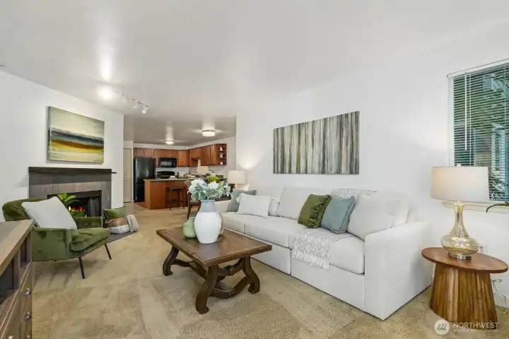 Welcome to Arrington Place! This unique ground floor corner unit features 2 bedrooms and 2 full baths all within 1032 SF of light filled space. Western exposure & open floor plan combined with newly painted interiors, create a warm and inviting atmosphere. Spacious kitchen with stand up counter area, newer cabinets and all black appliances are perfect for entertaining. Wood burning fireplace and walk out patio complete this desirable first floor unit - NO STAIRS! Nestled in a prime location near top rated schools and downtown Issaquah's fabulous main street and Dining choices - Plus great access to hiking trails on Tiger Mountain and I-90. Amenities include ~ 2 parking spaces, Extensive HOA coverage, Clubhouse with community room, Hot Tub, Exercise Room and fantastic common area for parties and community use. Additional Storage on the same floor. NO Rental cap!