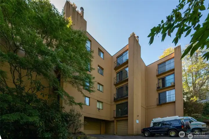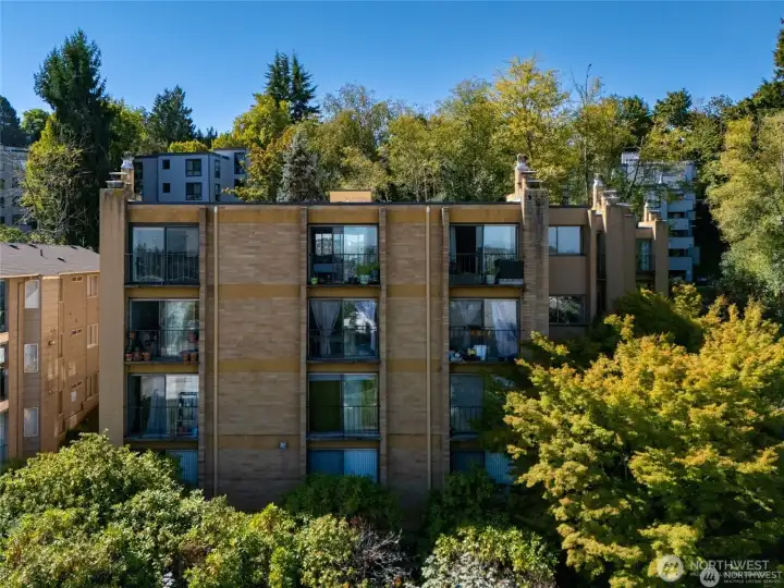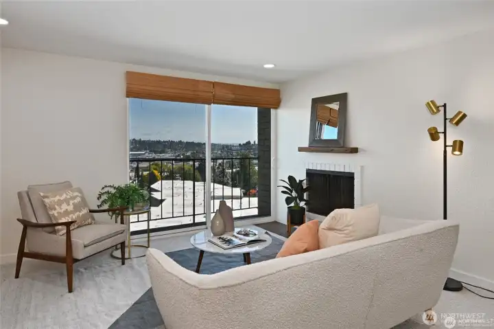 Tastefully updated for modern comfort while honoring its spacious 1977 architecture, this top-floor end unit is a light-filled sanctuary. Southern & eastern exposures flood home with natural light, showcasing nearly 180° unobstructed views from Mount Baker to the Cascades and south. The newly opened kitchen features honed granite counters, tile backsplash, & LVP—perfect for entertaining into the expansive living/dining areas. A fully renovated bathroom adds contemporary style, while generous room sizes offer timeless livability. Nestled down a private lane, enjoy secure parking & a highly efficient HOA w/ low dues. Serene, treehouse-like retreat ideally positioned for both peaceful living & easy access to vibrant culture & outdoor adventure