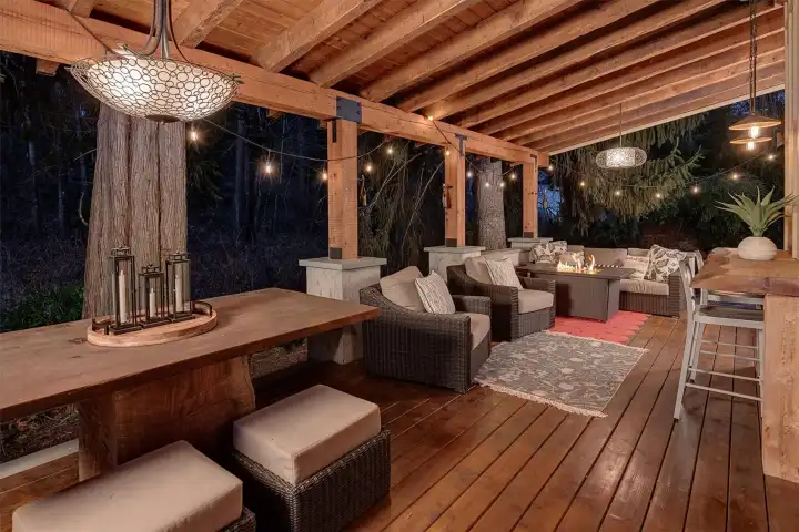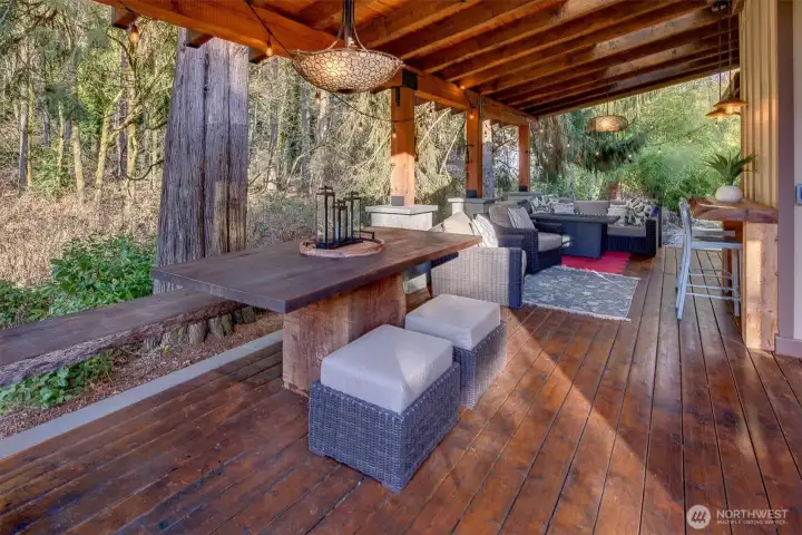 Thoughtfully designed to embrace the outdoors, this serene custom home is privately situated on a beautiful landscaped ¾-acre lot alongside picturesque May Creek. This unique property offers a peaceful retreat where indoor comfort seamlessly blends with the sights and sounds of nature. Designed to maximize both nature views & everyday comfort, features rich hardwood floors, soaring vaulted ceilings, exposed beams & a wall of windows that floods the open-concept layout w/abundant natural light. Spend evenings around the fire pit or unwind beneath the large covered deck. The chef’s kitchen boasts slab granite countertops, luxury stainless steel appliances, & a gas cooktop with matching oven—perfectly designed for both everyday living and effortless entertaining. The primary suite is a peaceful retreat, featuring dual private balconies, separate walk-in closets, and a spa-inspired bath designed for relaxation and rejuvenation. A functional mudroom, advanced HVAC with electric filter system, and a built-in sprinkler system add everyday convenience. A detached 25' x 35' shop with dedicated office space, plus an additional storage shed, enhances the property’s flexibility—ideal for hobbies, workspace, or extra storage needs. Located at the outskirts of Newcastle, within the highly regarded Issaquah School District and just minutes from shopping and dining at Factoria Mall as well as the vibrant amenities of Bellevue, this home offers the perfect balance of privacy and convenience.
