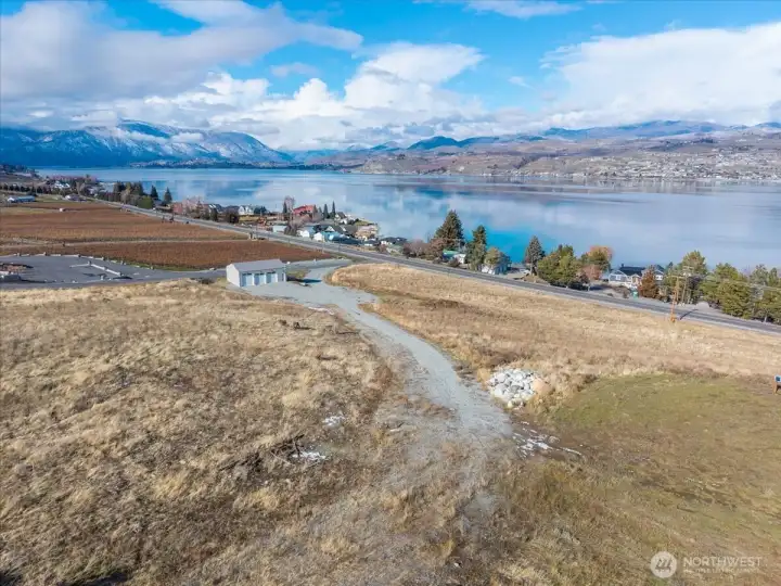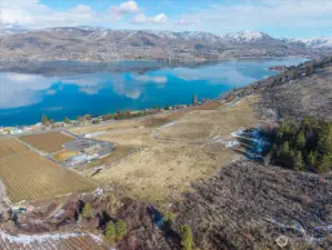 A truly rare acreage opportunity in one of Lake Chelan’s most desirable locations! This exceptional 20+ acre property offers unmatched 180-degree lake views in a spectacular setting! Zoned Special Use District, with outstanding flexibility—create your dream estate, design a tasting room or bed & breakfast, develop a wedding venue, short-plat into generous parcels, or pursue a larger development with 12,000 sqft. minimum lot sizes. The possibilities are wide-open for your vision (Buyer to verify all uses). The property currently has 1.5 acres of Sauvignon Blanc and Semillon mature grapes, and essential utilities are in place including sewer in the street, a drilled well, on-site power, and valuable Lake Chelan irrigation water rights. A fully remodeled, insulated, and heated stick-built shop adds immediate functionality, featuring three bays, concrete floor, and plumbing for a mini-split system. Access is easy via a beautifully paved shared road off Hwy 97A, and there are multiple benched sites ready for future homes or additional structures. A one-of-a-kind canvas in an unbeatable location—bring your imagination and build something extraordinary. Owner financing may be available, ask LA for details!