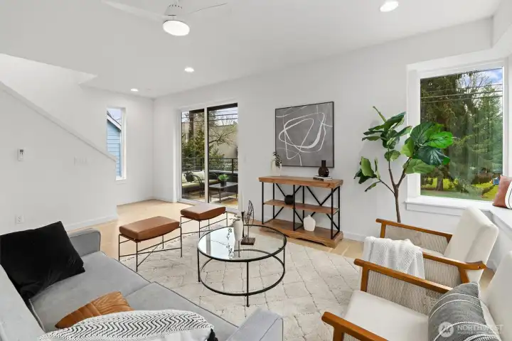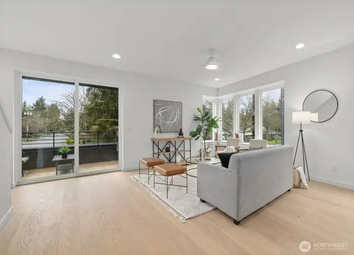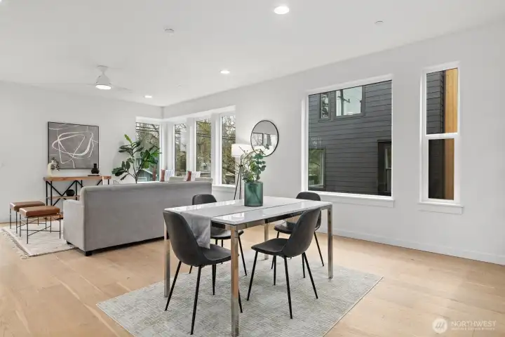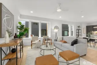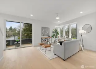 LAST HOME! This home located at Scout in Shoreline features a modern elevation, 2 car garage, an open living space, and lovely treed views This floor plan features 3 bedrooms, 3.25 baths along w/seamless cooking, dining & living integration. The kitchen sparkles with sleek quartz countertops & lovely eating bar perfect for entertaining. Engineered matte finish hardwood floors add warmth & durability. Did we mention the 2 car garage AND extra storage? Scout is located in a prime location less than a mile from the light rail—making your downtown Seattle commute a quick 20 minutes and a block away from the Interurban Trail for biking & running trails!