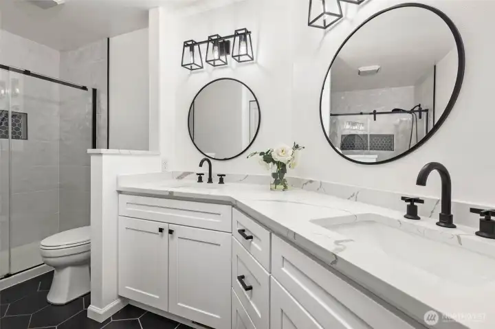 Beautifully updated 5 bed, 2.5 bath Snohomish home offering space, comfort, and extensive upgrades throughout. Major improvements completed in the last five years include a new roof, HVAC with air conditioning, fresh exterior and interior paint, new garage doors with openers, and upgraded lighting fixtures throughout. The main level features durable laminate wood flooring, while the upper level offers brand new carpet. The fully remodeled kitchen is the heart of the home with custom cabinetry, oversized island, granite countertops, subway tile backsplash, and new GE appliances, opening seamlessly to spacious living and dining areas perfect for everyday living and entertaining. All bathrooms have been beautifully remodeled with new cabinetry, tile flooring, walk-in showers, and modern fixtures. Additional updates include a new water heater and brushed nickel hardware throughout the home. Step outside to a private backyard retreat featuring a covered concrete patio with hot tub, upper brick paver patio with fire pit, and a putting green with artificial turf, creating the perfect outdoor entertaining space. Located in the highly sought-after Glacier Peak High School district, this move-in ready Snohomish home combines thoughtful upgrades, modern comfort, and fantastic outdoor living. Close to parks, trails, and everyday shopping, with easy access to Hwy 9, US-2 & I-5-an ideal commuter location. Enjoy year-round entertaining, privacy, and room for everyone + guests.