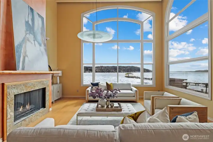 Stunning Lake Washington waterfront retreat w/57 feet of prime no-bank frontage in the heart of Lake Forest Park’s highly sought-after Sheridan Beach. Set on a level 14,169 square foot lot, this private, gated 4 bedroom, 4.5 bath Mediterranean-style residence enjoys expansive southeast-facing views across Lake WA to the Cascade Mountains, Inglewood Golf Club & Arrowhead Point, along w/sweeping vistas toward the north end of the lake, Mt Rainier, Magnuson Park & endless sunrises. Constructed in 1994 & built to a strong standard of quality, this elegant 4,930 SF home offers light-filled living spaces w/cathedral ceilings & refined architectural detail. Luxurious chef’s kitchen w/high-end Viking, Bosch & Gaggenau appliances, custom cabinets & striking barrel ceiling. 2 spacious primary bedrooms w/walk-in closets & spa-like bathrooms. Ample lower-level w/2 add'l bedrooms, 2nd kitchen & family room. Dazzling deck & patio, hot tub & level lawn. The exceptional outdoor setting also includes the property’s right to access the 110-foot shared dock on the adjacent SW property via recorded easement. Gated property w/2 separate oversized one-car garages & off-street parking. Perfectly located on a quiet residential lane, the home is within walking distance to Lake Forest Park Town Center & the Burke-Gilman Trail & just 10–15 mins to U-Village, Magnuson Park & the rest of Seattle. An exceptional opportunity to own a stunning Lake Washington waterfront home!