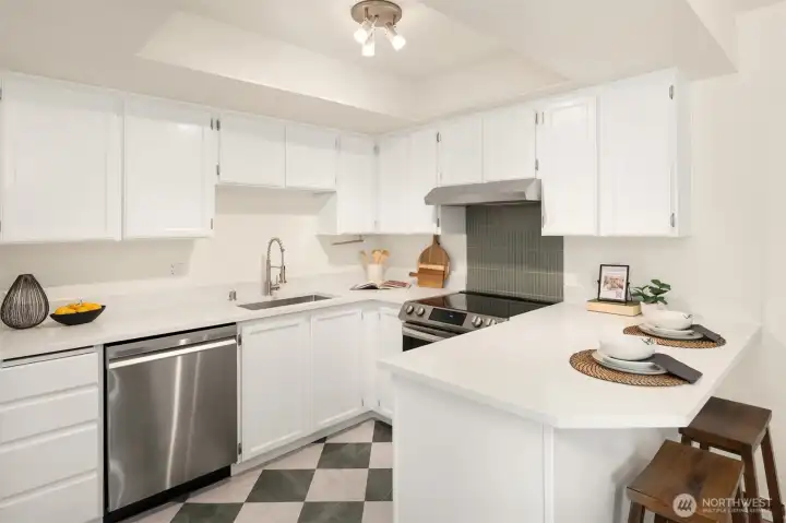 Exceptional first-floor corner unit just blocks from the heart of Downtown Bothell. Bathed in an abundance of natural light, this updated residence features a spacious open-concept floor plan with seamless transitions between the kitchen, dining, and living areas. Entertain and cook in the refreshed kitchen boasting brand-new quartz countertops, undermount sink, and ample cabinet space. The interior has been thoughtfully refreshed with LVP flooring, new carpet and two updated bathrooms featuring new vanities and lighting. Large windows and a private deck invite the outdoors in, while an additional exterior storage closet provides room for seasonal gear. Unit amenities include in-unit laundry and two parking passes, including a designated covered carport. Step outside to explore a true commuter’s and outdoor enthusiast’s paradise. You are mere blocks from Main Street Bothell’s vibrant cafes, community events, and eateries. Enjoy immediate access to the Sammamish River Trail, local dog parks, and the Sammamish River for weekend kayaking and canoeing. With a quiet, tucked-away location and effortless access to major transit routes, tech hubs, and UW Bothell, this condo is the perfect blend of urban energy and PNW serenity. Welcome home to the best of Bothell.