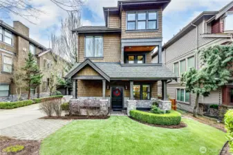 Experience the ultimate in downtown Kirkland living in this exquisite NW shingle-style craftsman townhome, perfectly positioned just half a block from the scenic Lake Washington waterfront. This residence seamlessly blends timeless architecture with high-end designer finishes, including rich espresso hardwoods, gold limestone, and walnut travertine. The expansive great room opens into a true chef’s kitchen, anchored by professional stainless appliances, custom cabinetry, and stunning Kashmir granite. Whether you are hosting on the covered view deck or retreating to the spa-like primary suite—complete with its own cozy fireplace—every detail reflects a curated living experience. With a main-floor guest suite and a private elevator for effortless access to all levels, this home offers the perfect balance of luxury and practicality in Kirkland’s most coveted corridor. In 2026, the Houghton corridor continues to be Kirkland's most prestigious "walk-to-everything" destination. Perfectly positioned for the modern professional, you are blocks from the Google campus, Metropolitan Market, and the Cross Kirkland Corridor (CKC) Trail, with the vibrant cultural heart of downtown Kirkland and the Lake Washington waterfront essentially serving as your front yard. Award winning Lake Washington Schools. Pre inspection attached to listing.