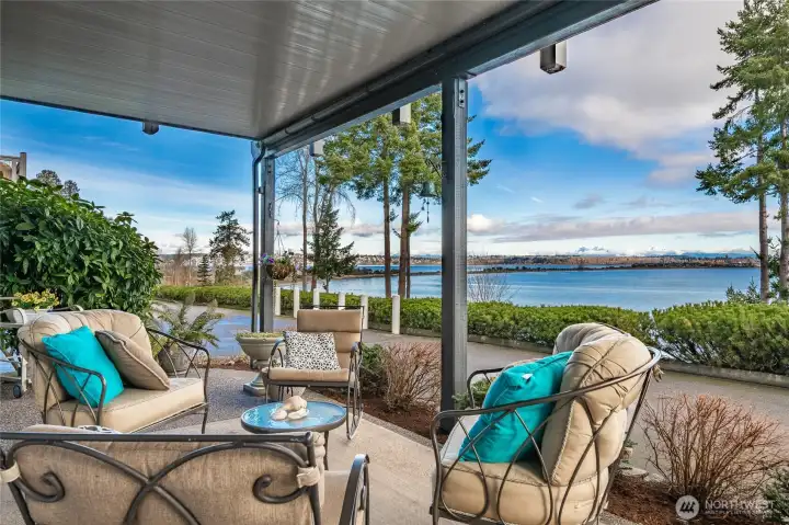 Presenting a rare opportunity to acquire a distinguished waterfront residence in the exclusive, gated enclave of Aerie at Semiahmoo. With just 11 townhomes gracefully positioned across five private acres, this community defines luxury living through privacy, security, & effortless elegance. Sweeping panoramic views extend across the marina & surrounding landscape to majestic Mt. Baker where vibrant sunrises transition into glittering city lights at dusk. Designed for refined main-level living, the home features a chef’s kitchen appointed with Viking Professional appliances, a built-in Miele coffee system, under-counter refrigerator drawers, warming drawer, wine cooler, & exceptional finishes throughout. Rich Brazilian cherry floors lead to a spacious primary suite showcasing dramatic water & mountain views. Hand-selected slate flooring throughout the home lends architectural presence & enduring durability, blending natural beauty with low-maintenance luxury. Maintenance-free decking provides the perfect setting for entertaining while enjoying panoramic views. A covered portion allows for year-round grilling & outdoor enjoyment. Upstairs, a versatile loft/flex space accompanies an ensuite guest retreat with unobstructed water vistas. The lower level offers a generous bonus room, an additional bedroom & bath, a cedar sauna, & flexible space ideal for fitness, hobbies, or media. A well-managed HOA ensures impeccably maintained grounds, enhancing the beauty, value, & prestige.