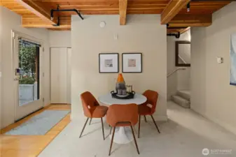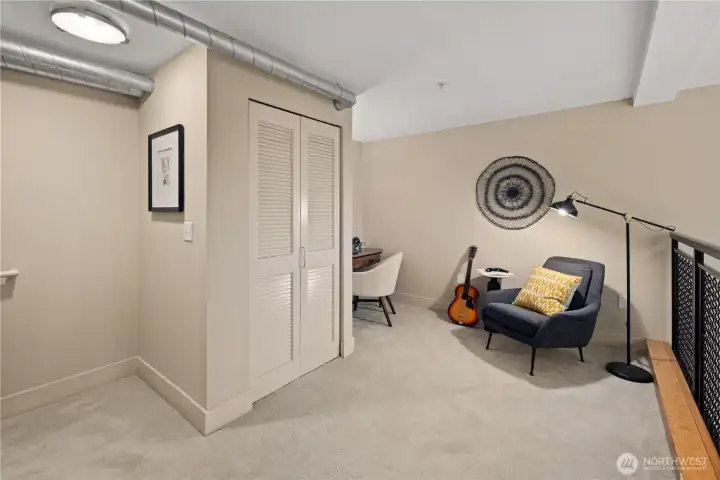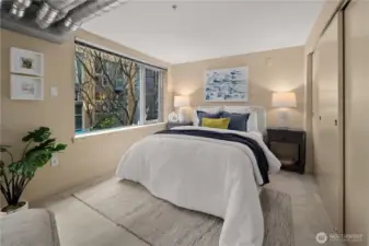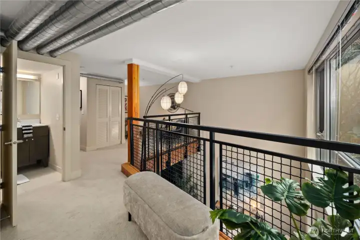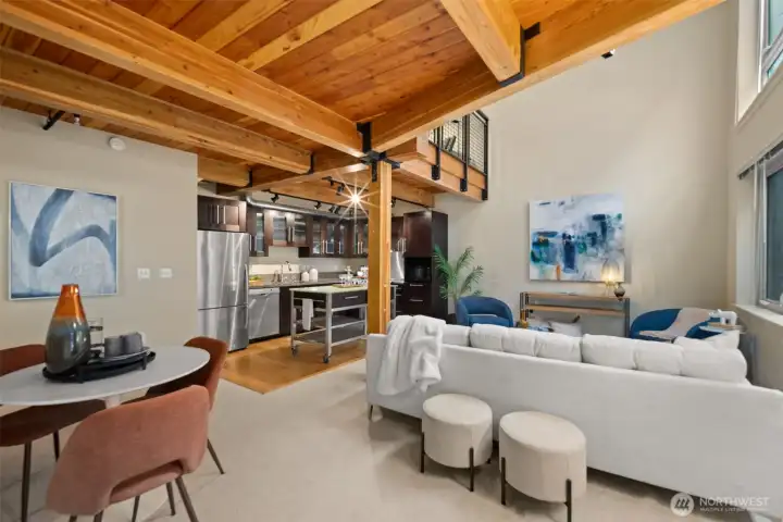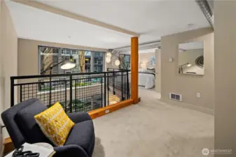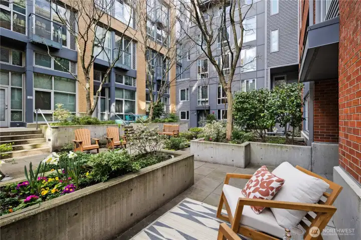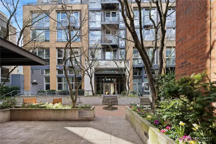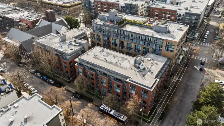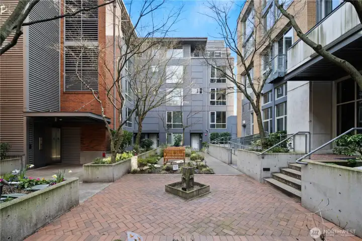Work hard. Play hard. Live well. Located in the heart of Capitol Hill, Seattle, the sought-after BRIX building holds a two-level loft that feels both connected and tucked away. Overlooking a quiet courtyard garden, this 1-bedroom, 1.5-bath condo offers city energy at your doorstep and calm the moment you step inside. Soaring two-story windows invite the sun to act as your interior designer, casting light across open living spaces and airy architectural lines. Evenings glow differently here. Mornings feel expansive. Upstairs, a generous bedroom, in-unit laundry, and a flexible loft create space for work, guests, or imagination. Above it all, the community rooftop becomes your stage with BBQ gatherings, skyline silhouettes, and sweeping views stretching from Mount Rainier to the iconic Space Needle. Extra-wide garage parking. Dedicated storage. Pet-friendly living. A well-funded HOA with on-site management. Thoughtful updates, including a refreshed lobby, complete the experience. Coffee shops are just outside your door. Light rail is just three blocks away. Minutes to Volunteer Park, South Lake Union, Downtown Seattle, Capitol Hill's fine dining, and playful nightlife.
