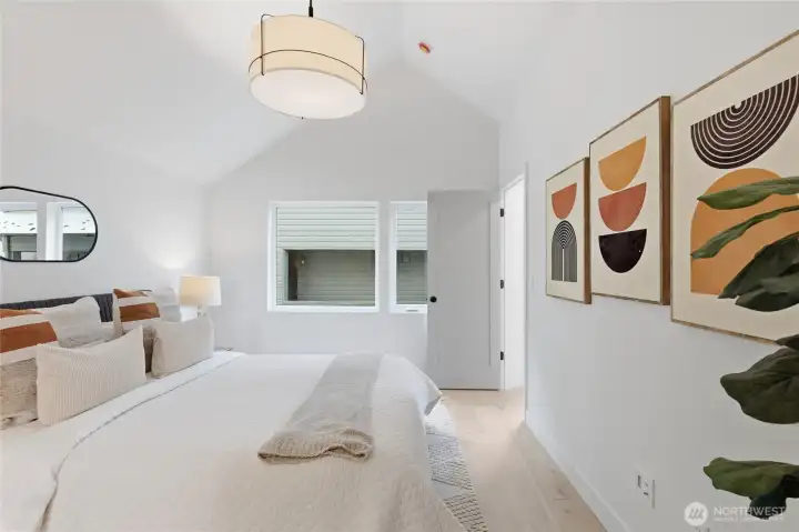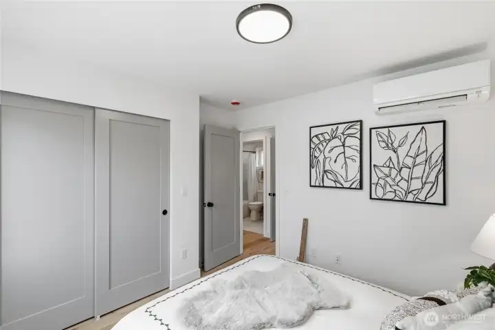 Sophisticated Ballard detached cottage offering 1,057sf of thoughtfully designed living space plus a heated 208sf garage/flex room. This 2-bedroom, 2-bath home features a dedicated office—ideal for remote work or creative pursuits. Soaring ceilings and generous windows flood the interior with natural light, while premium finishes elevate everyday living. Enjoy Bellmont cabinets, engineered hardwood throughout (no carpet), and heated floors in both bathrooms. Mini-split A/C in every room provides year-round comfort. The primary bathroom includes motion sensor lights and a dedicated bidet outlet for modern convenience. The heated garage offers flexible space for parking, storage, or a hobby room. Private backyard retreat with easy access to NW 65th dining and Downtown Ballard—88 Walk Score and 95 Bike Score. Quick routes to Golden Gardens and 15th/99 for SLU/Downtown commutes. Top-ranked schools!