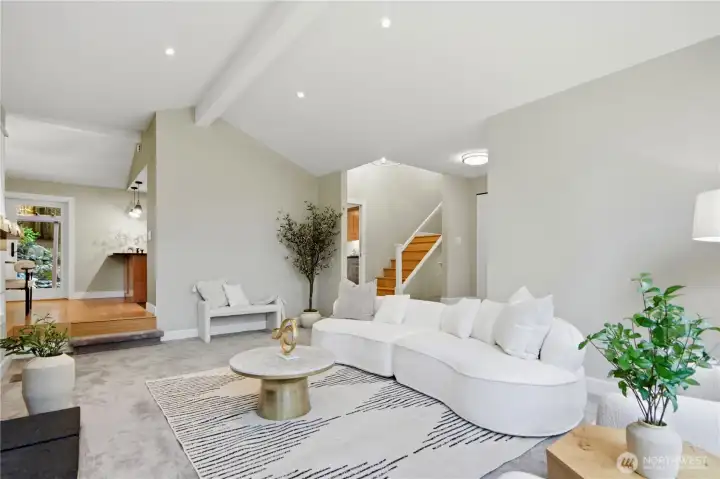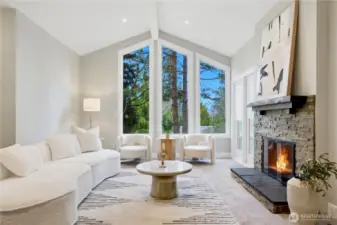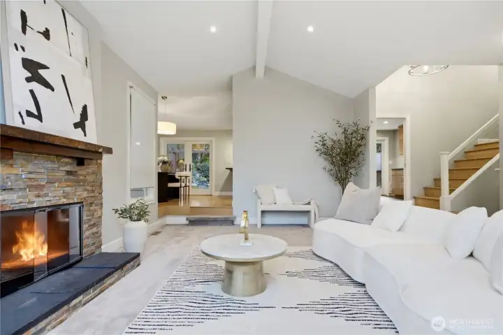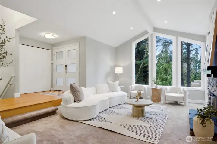 Experience sophisticated living in this immaculately updated Northwest Contemporary, nestled in Bellevue’s prestigious Horizon Crest. Dramatic vaulted ceilings and floor-to-ceiling windows flood the home with natural light, highlighting elegant hardwood floors. The chef's kitchen is a masterpiece featuring high-end Miele appliances, granite countertops, and cozy heated tile floors. Upstairs, find 3 bedrooms including a serene primary suite with a luxurious private steam shower. The daylight lower level offers a 4th bedroom suite and huge rec room. Step outside to a private, fully fenced backyard with a spacious deck, tranquil water feature, custom treehouse, play structure and lush landscaping for endless outdoor fun.Peace of mind upgrades: newer roof, furnace, AC, water heater, insulation, sprinkler system, nest thermostat. An expansive driveway provides ample space for extra RV or boat parking. The two-car garage is complemented by an additional level perfect for a shop or extra storage.Unbeatable location with easy access to I-90/I-405, parks, and trails. Top-rated Bellevue schools including Newport High! Welcome home.