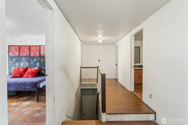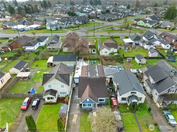 This classic 1928 Craftsman-style home beautifully blends historic character with over 2,200 sq. ft. of generous living space and functionality. Freshly painted on the exterior, it offers timeless curb appeal while preserving the architectural charm. Inside, original hardwood floors flow throughout, showcasing the home’s craftsmanship and warmth. The spacious main floor features a large living room filled with natural light, a formal dining room ideal for gatherings, and a dedicated office perfect for working from home, and the kitchen comes with a convenient coffee bar. The main level also includes the first bedroom, a half bath, and a large primary bedroom with direct access to the back patio. The primary bathroom is equipped with a handicap-accessible tub, and a utility room completes the main level for practical daily living. Upstairs, you’ll find five additional bedrooms and a full bathroom, offering abundant space for guests, hobbies, or multi-generational living. The property also features a large two-car garage with dedicated shop space and additional storage—ideal for projects, tools, or extra vehicles. Outside includes a utility shed, and the fully fenced backyard provides privacy and room to enjoy the outdoors. A back patio with durable Trex decking creates the perfect setting for entertaining, barbecuing, or relaxing evenings at home.