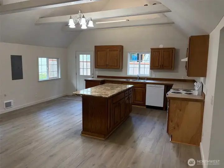 Granite Falls nice large rambler with bonus 4th bedroom upstairs on large 13068 lot with fenced back yard and territorial views. Very nice condition with brand new luxury vinyl plank flooring in main living areas and brand new carpet in all the bedrooms. Really nice floor plan with space galore and roomy living areas. Vaulted ceilings in kitchen/dining/living room so lovely. Great location just minutes from downtown Granite Falls. This one is priced to sell...sq footage of home and lot make it a slam dunk in this market!--come and get it! O = LA. Fully fenced back yard features large brick patio with pergola and fire pit, ample garden spaces and territorial views.