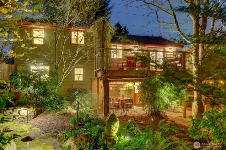 Welcome to your oasis – a versatile 1,650 sq ft property designed for flexibility, comfort, & lifestyle. This thoughtfully laid out home offers multi-level living with income or multi-generational potential on a spacious 7,500 sq ft lot.The top floor features a bright 2 bed, 1 bath living space with beautifully refinished hardwood floors, cozy bathroom heated floors, fresh interior paint, & French doors opening to a spacious entertainment deck. Enjoy peaceful views overlooking a professionally designed, lush backyard filled with mature landscaping and privacy.The middle level includes a private studio apartment complete with a large walk-in closet, convenient kitchenette, & bathroom with heated floors. Ideal for rental income, guest quarters, or extended living. A covered patio beneath the upper deck creates a secluded outdoor retreat perfect for relaxing or entertaining.The lower level basement offers a generous flex space ready to fit your needs—home office, art studio (with specialty lighting already installed), workout room, media space, or creative retreat. Endless possibilities for today’s live/work lifestyle.Outside, the expansive 7,500 sq ft lot includes pond with a hand carved fountain, a fire pit, ahandmade copper spiral planting bed, a greenhouse, storage shed, & abundant garden space forthose who love to grow and entertain outdoors.Located near parks, transit, and neighborhood amenities, this property blends privacy, versatility, and opportunity.