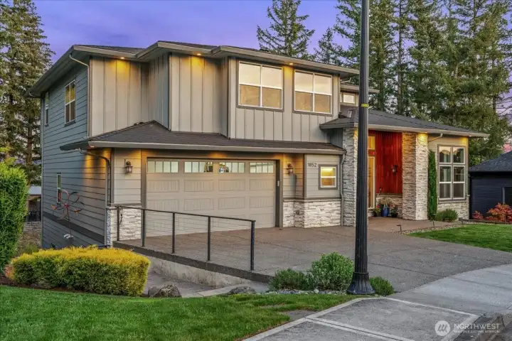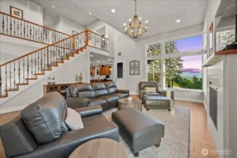 VEW Property with a HUGE .30 Acre lot and Versatile Multifamily Layout! This exceptional 6BR/4BA home offers 4,037 sq ft of elegant and functional living space, perfectly designed for comfort and flexibility. Enjoy breathtaking river views and stunning sunsets from the open, light-filled layout featuring soaring 12' ceilings and rich hardwood floors. The living room captivates with high ceilings and a cozy fireplace, while the gourmet kitchen impresses with sleek quartz countertops, premium stainless-steel appliances, and a spacious center island. The chic primary suite is a tranquil retreat with spectacular views and a balcony, while the lower level provides a fully independent living space ideal for guests, extended family and separation. A 3-car garage, extra storage room, and a fully fenced backyard with multiple overlooking decks complete this incredible residence. The vibe is so serene.
