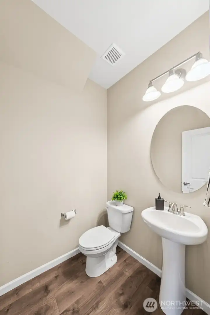Beautifully maintained, this 3 bedroom, 2.5 bath home offers modern comfort in one of Enumclaw's most welcoming neighborhoods - complete with partial view of Mount Rainier. The thoughtful floor plan provides flexibility and space to live well. A finished main-floor room makes the perfect home office, playroom, or guest retreat. The open-concept living area features a cozy fireplace and flows effortlessly into dining and kitchen spaces - ideal for both everyday and entertaining. Stay comfortable with year-round central air conditioning. Upstairs, a spacious family room creates a second gathering space, while the primary suite offers a relaxing escape with a walk-in closet featuring a built-in organizational system. Two additional bdrms and full bath with laundry complete the upstairs. Outside, enjoy a charming wraparound front porch that extends along the side of the home, adding curb appeal and character. The fully fenced back yard provides privacy, room to relax, garden, or play space. A double-car garage offers ample storage and convenience. Located in a desireable community with a beautiful neighborhood park, open field for recreation and paths to stroll on. This home combines modern construction, mountain views, and a true sense of neighborhood - all at an exceptional value.