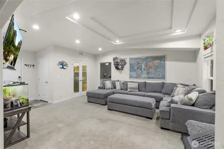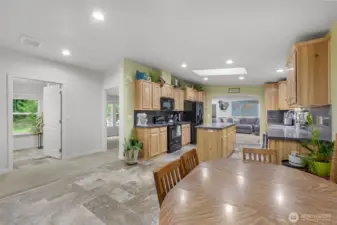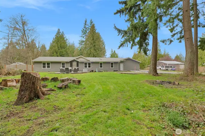 Move in ready 3-bed manufactured home in Stanwood on 1.08 flat, usable acres with a 3-car garage and RV parking. Built in 2016, this 1,815 sqft home offers 3 bedrooms, 2.5 baths, and comfortable single level living with a functional open layout.The kitchen provides abundant cupboard storage, generous counter space, & a central island that anchors the living area, making everyday living & entertaining easy. The kitchen & living areas feature updated dimmable LED can lighting & great natural light. A small dedicated office space adds flexibility for remote work, hobbies, or study. The spacious primary suite includes a private bath & generous closet space, while two additional bedrooms offer versatile use. Outdoor living extends the functionality with a large front patio ideal for entertaining & a fully fenced backyard. The level 1.08-acre lot includes mature trees for privacy & established plantings with 3 cherry trees, 1 apple tree, blueberry bushes, raspberries, and an asparagus bed, plus raised garden areas. The 3-car attached garage is 864 sqft with dedicated RV parking & abundant exterior parking. Located in the Lakewood School District and close to parks and lakes, this move in ready 3-bed manufactured home in Stanwood delivers space, storage, & acreage living in Snohomish County. Pre Inspection Available