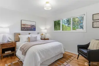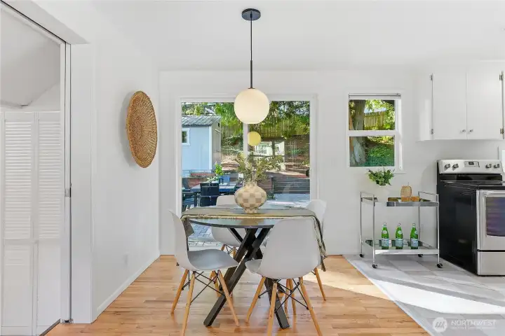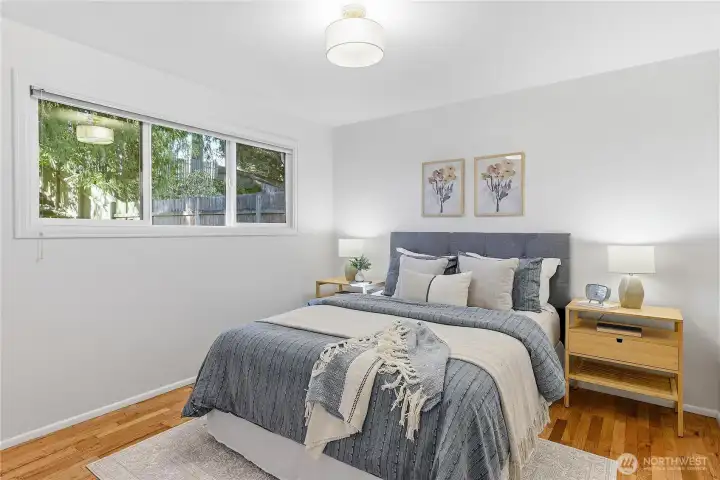 This charming home brings the best of both worlds-peaceful neighborhood living with effortless city access. Perfectly positioned in Shoreline between the convenience of light rail and the calm of a quiet residential street. This move-in ready home offers comfort, charm, and flexibility. Step inside to beautifully refinished hardwood floors and a warm, inviting layout featuring generous bedroom sizes, updated kitchen and bathroom, and an additional family room ideal for relaxing or entertaining. Above the family room, a finished loft space perfect for a reading nook, play space, or storage! Out back, enjoy a spacious yard perfect for gatherings, gardening, and a large shed with power to house your tools and outdoor gear. The home backs to a hidden neighborhood park accessible only by a peaceful walkway, giving you a rare sense of privacy and green space just beyond your backyard. Quiet, connected, and turnkey, this Shoreline gem is perfect for you!